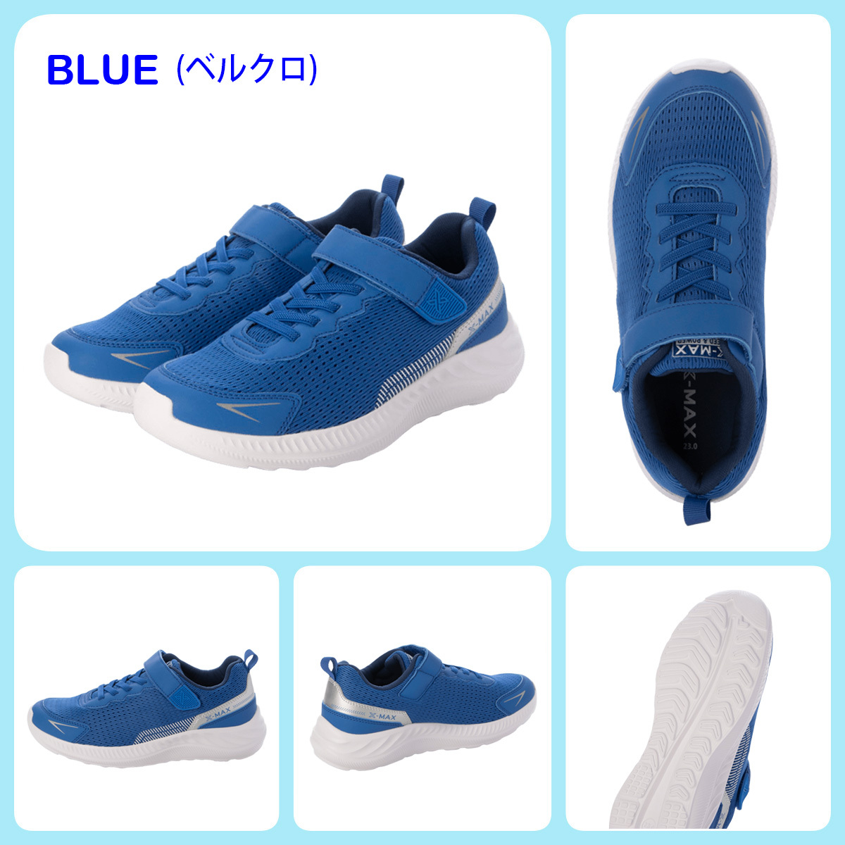 ★新作・人気★ キッズ スニーカー 運動靴 通学靴 スクールシューズ ランニングシューズ メッシュ 抗菌防臭 超軽量 男女兼用 25874-blu-220