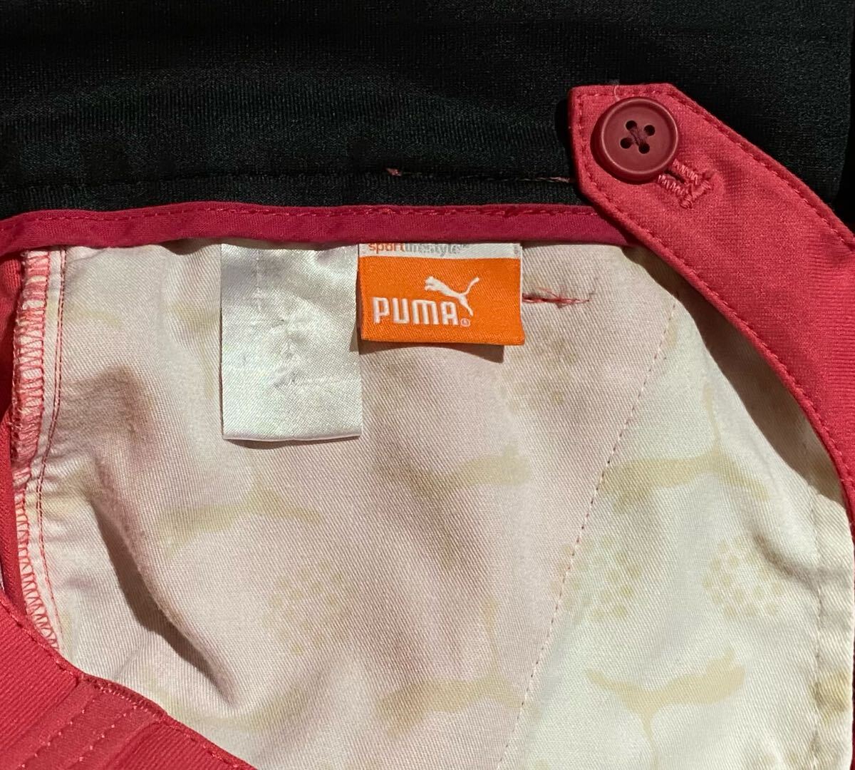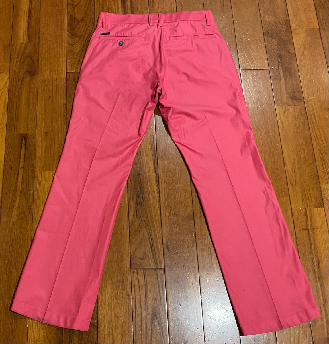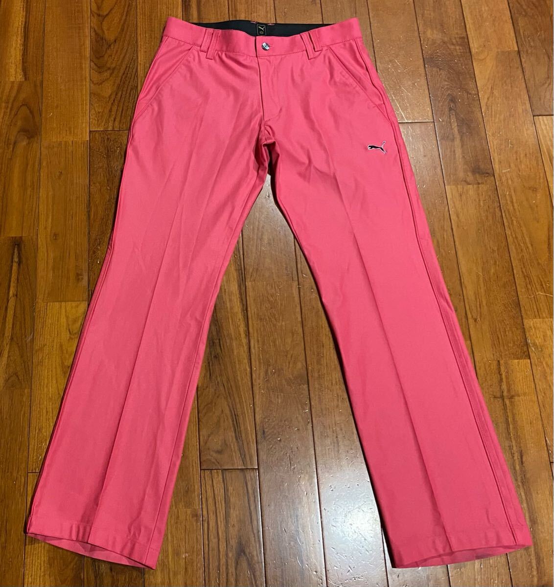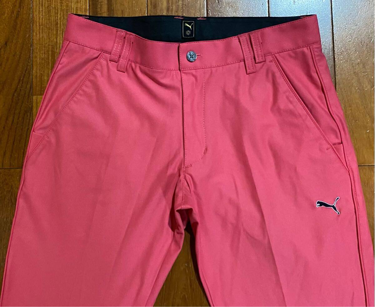 プーマ ゴルフのストレッチパンツ、901493です。色はピンクです。USEDで裾部分に少し汚れありますが状態は良いです(10段階中7程度)。生地はストレッチ入りでポリエステル100%です。ジッパーフライです。正規品です(プーマジャパン(株)、中国製)。サイズはウエスト76cmでウエストは重ねずに平置きで約76cm、ヒップ約100cm、股上約23cm、股下約74cm、股下15cmのふともも部分約54cm、裾まわり約44cm、重量約340gです。発送はゆうパケットポストになります。