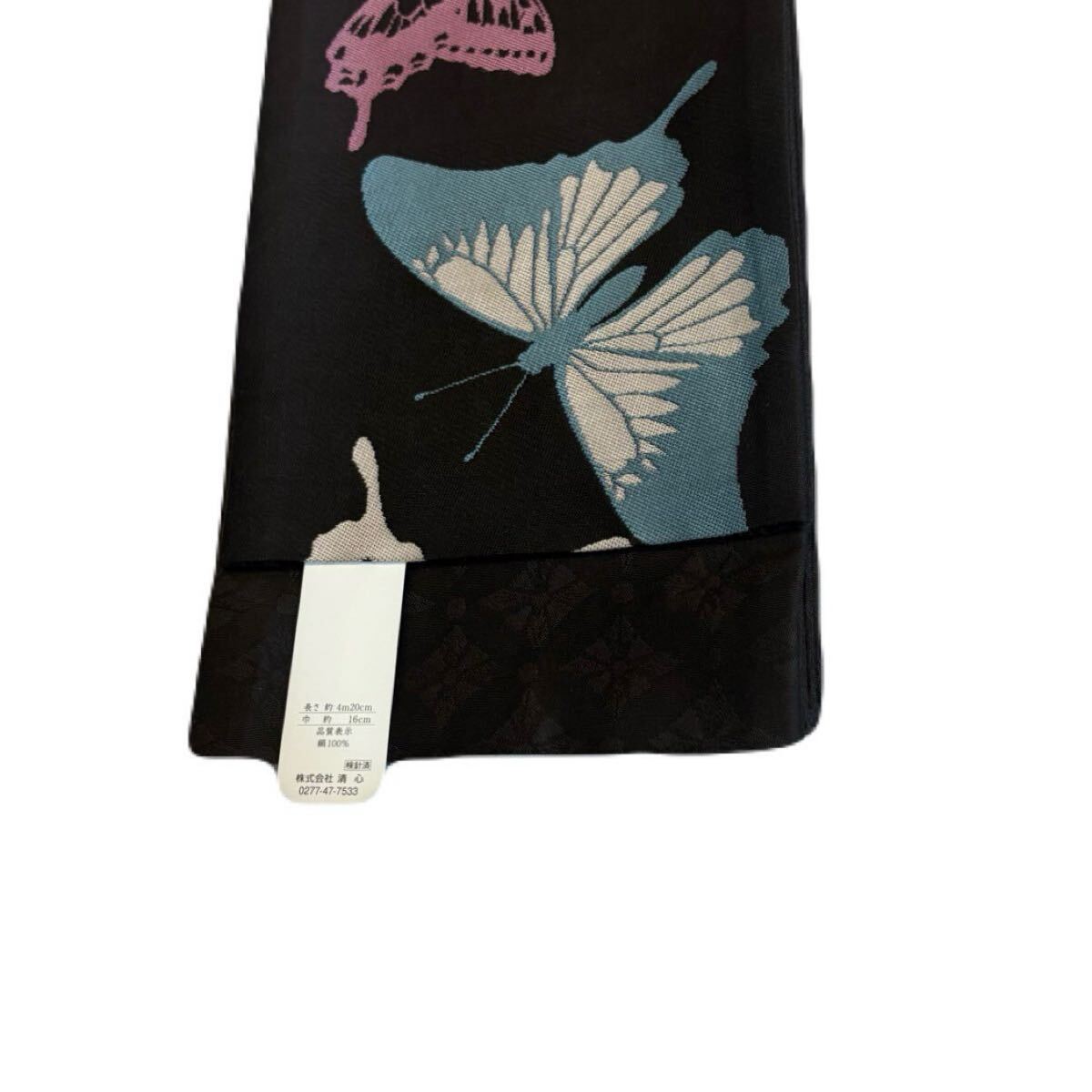 黒地にピンク・水色・白のバタフライがモダンでお洒落なデザイン。