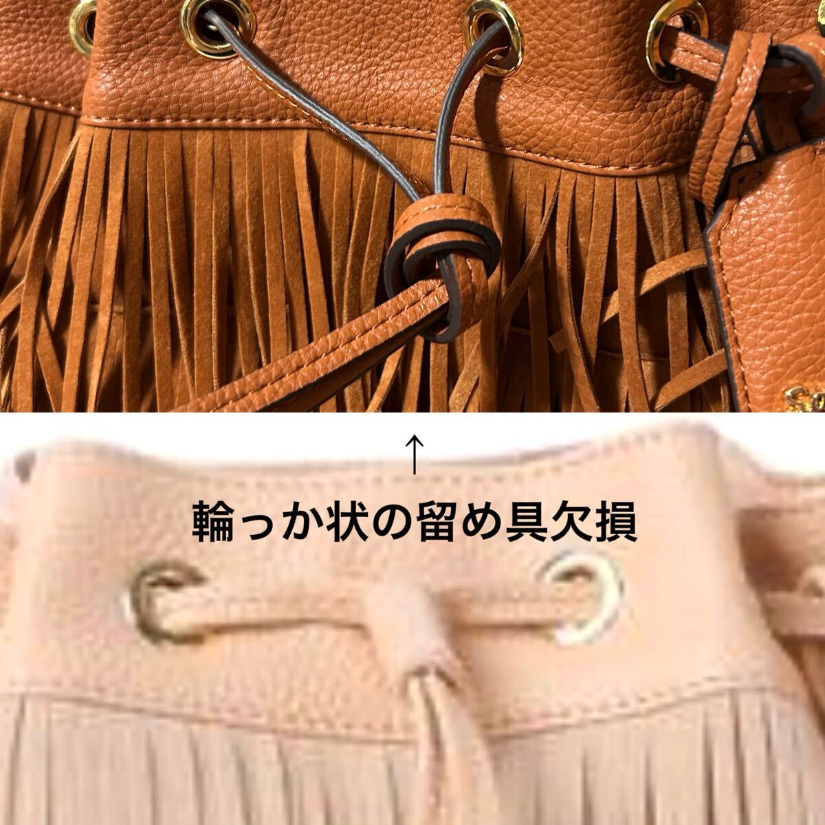 バッグの口を閉めるレザー紐をキュッと調整する留め具様なモノが欠損してます→写真参照