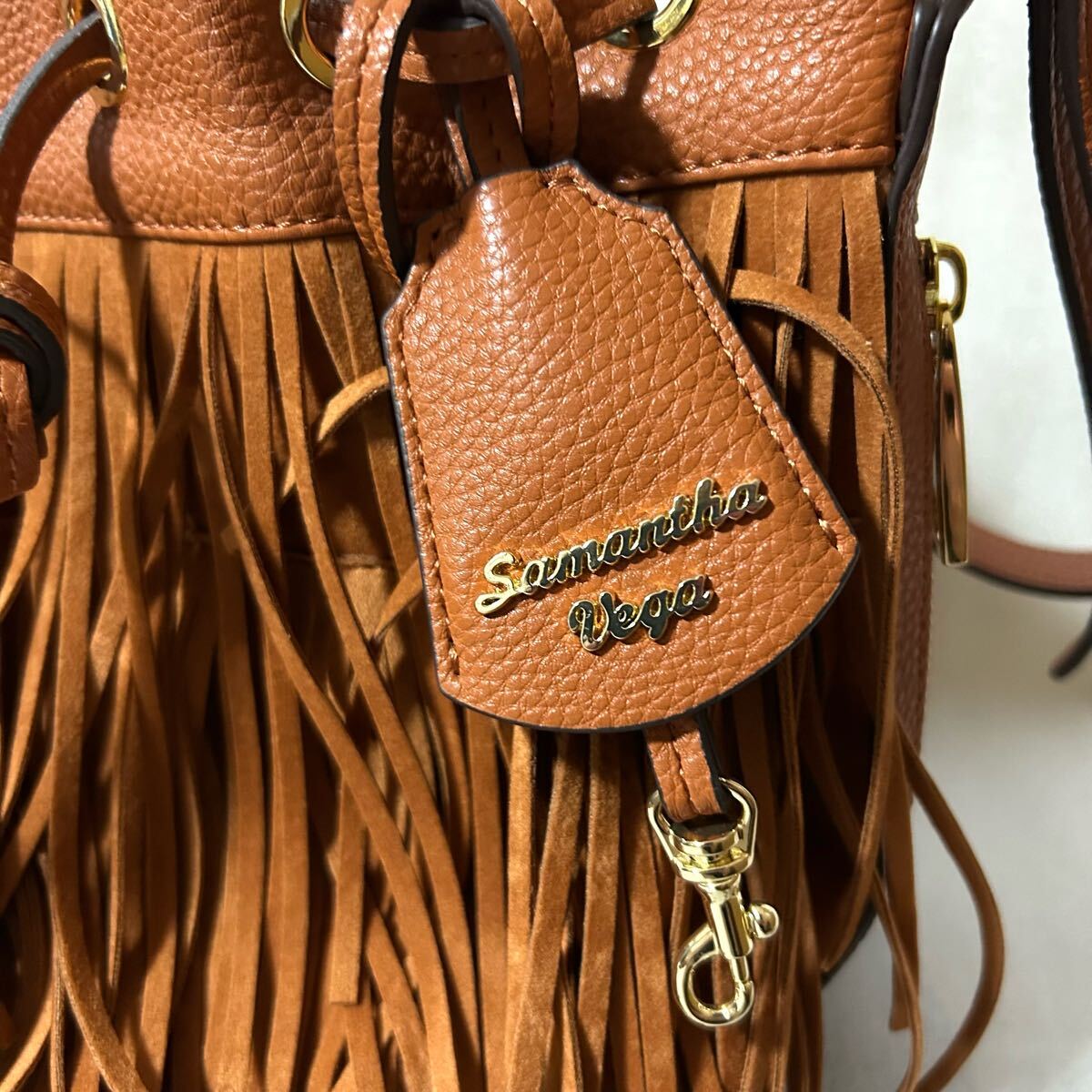 訳あり!サマンサベガ 中古古着フリンジショルダーバッグ 合皮剥がれ有り+留め具欠損