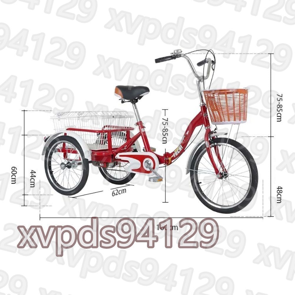 折りたたみ三輪車 3輪クルーザー自転車 大人の三輪車高齢者用自転車 20インチ3輪自転車、3輪、クルーザー、デュアルブレーキ、折り畳み式、省スペース、高齢者、女性、高齢の子供、ジュニア自転車に適しています