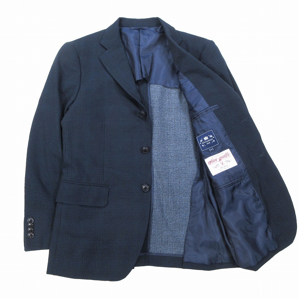 | 【Mitsumine ミツミネ 三峰 チェック柄 テーラードジャケット ブレザー 段返り3B 背抜き 紳士 カジュアル S ネイビー メンズ】 | |
