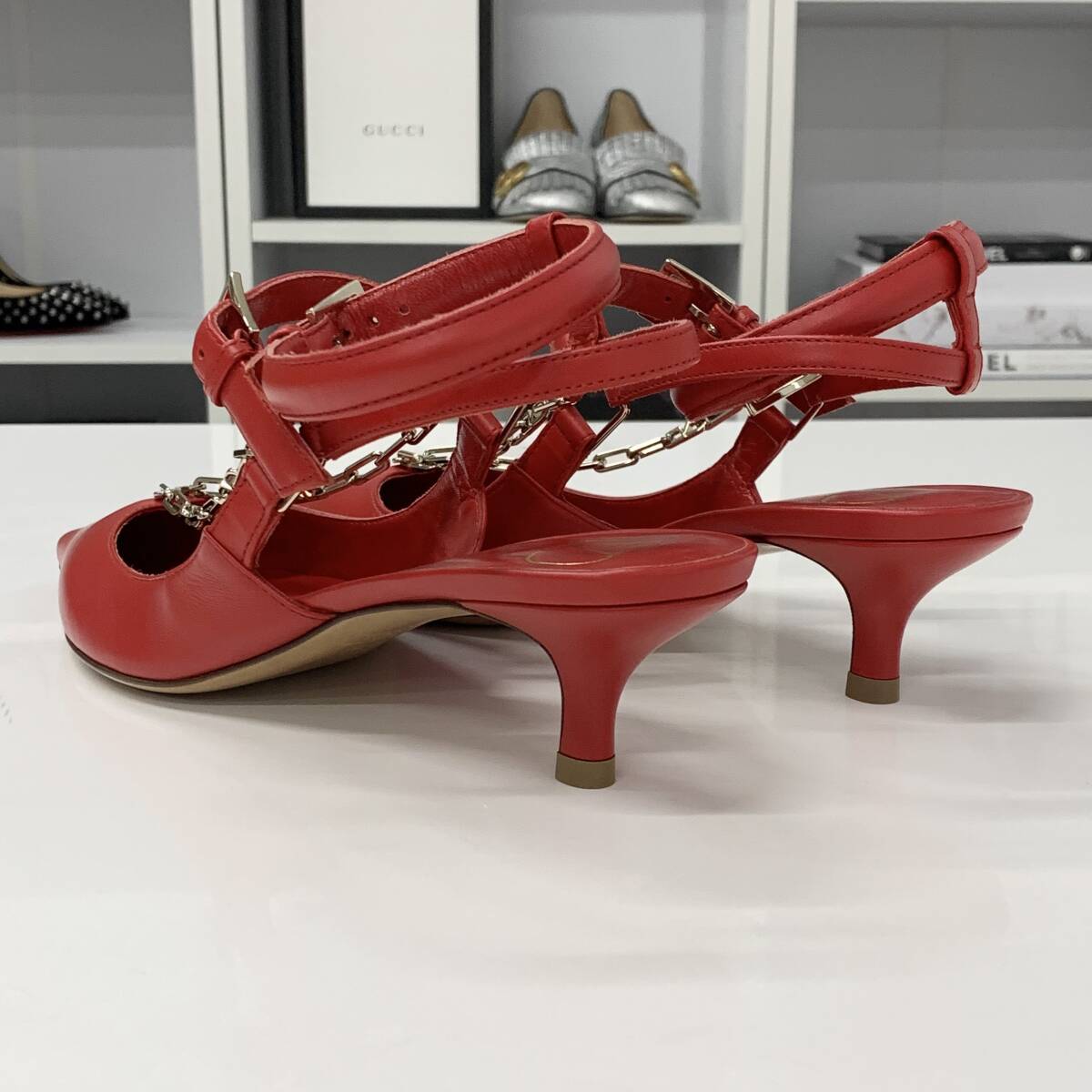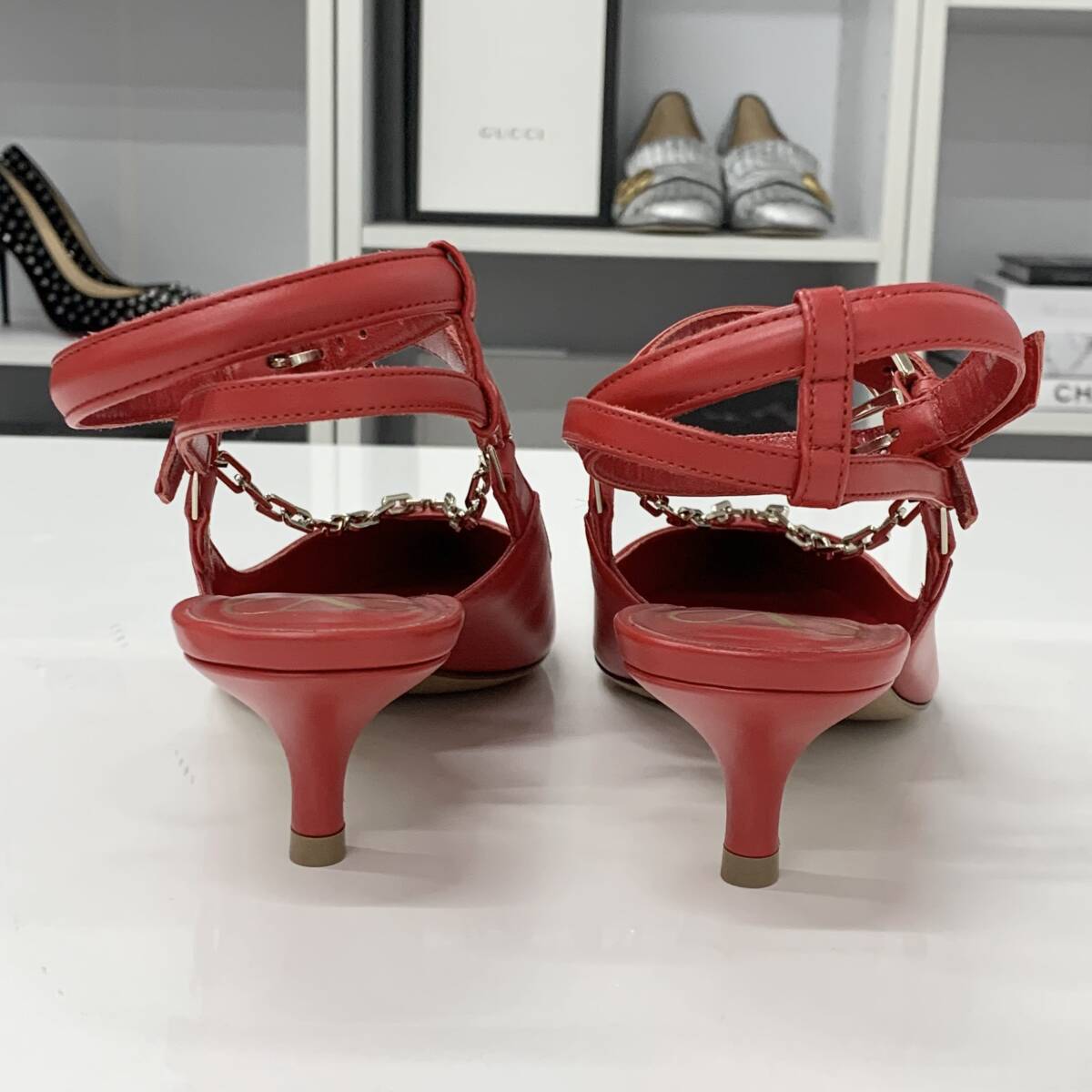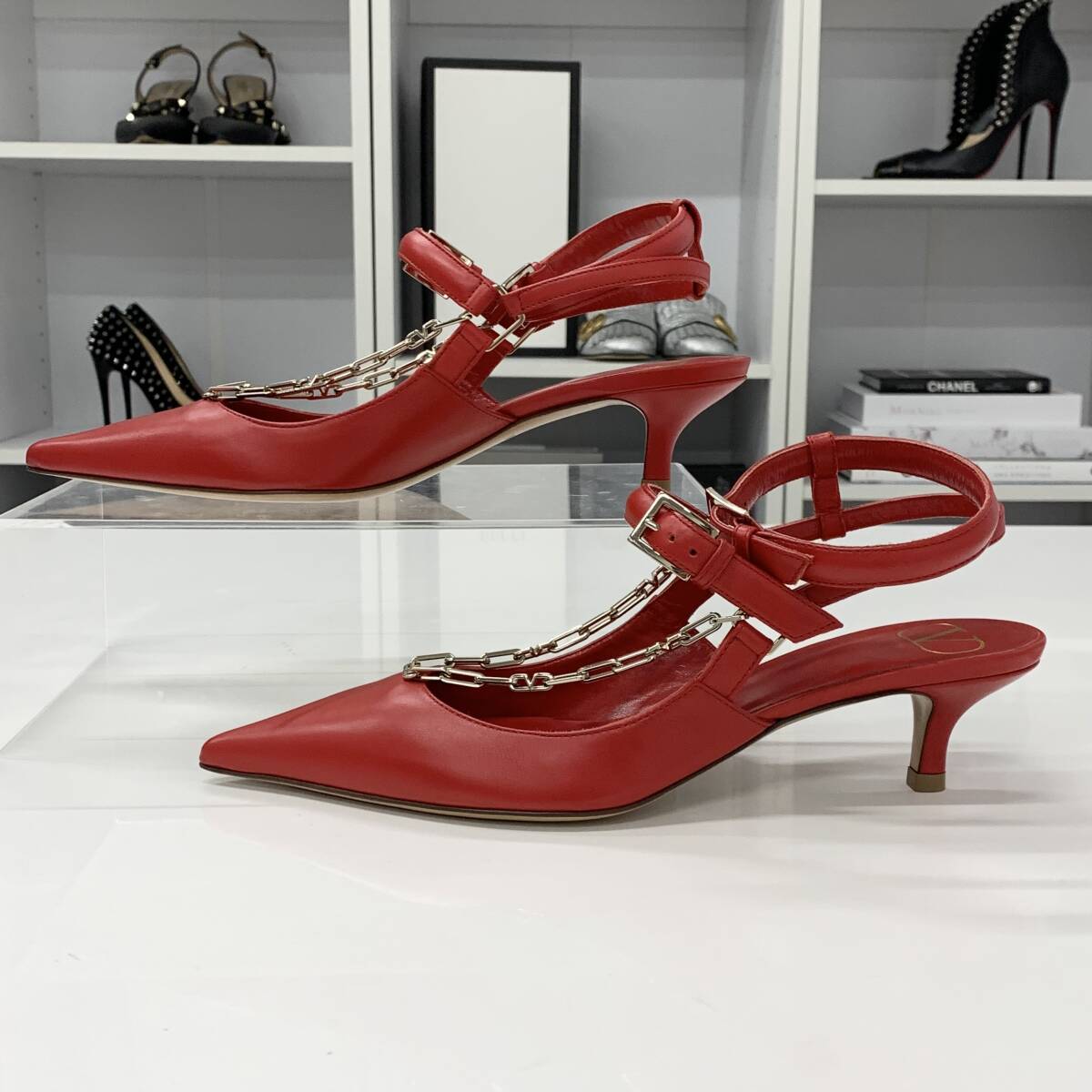 未使用 ヴァレンティノ  ロゴチェーン アンクルストラップ パンプス レッド