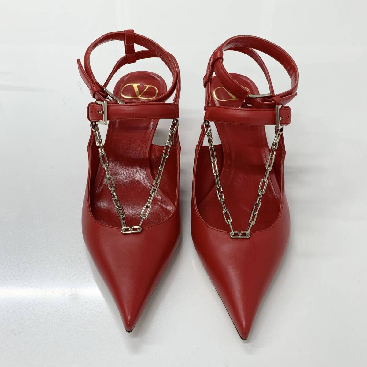 M11869 未使用 ヴァレンティノ ロゴチェーン アンクルストラップ パンプス レッド
