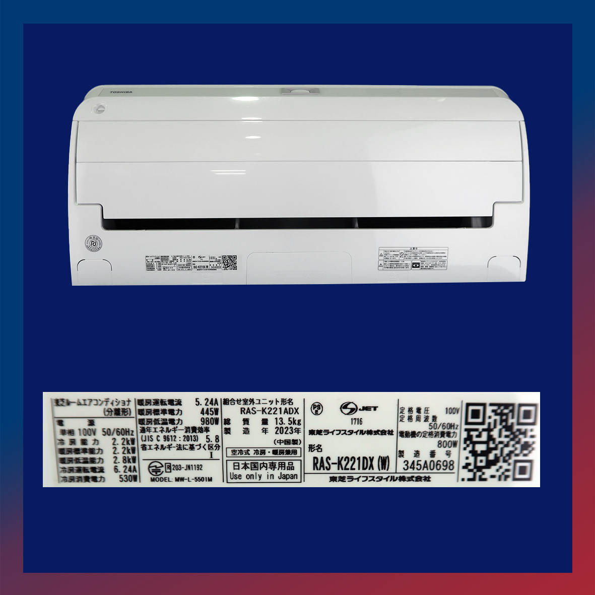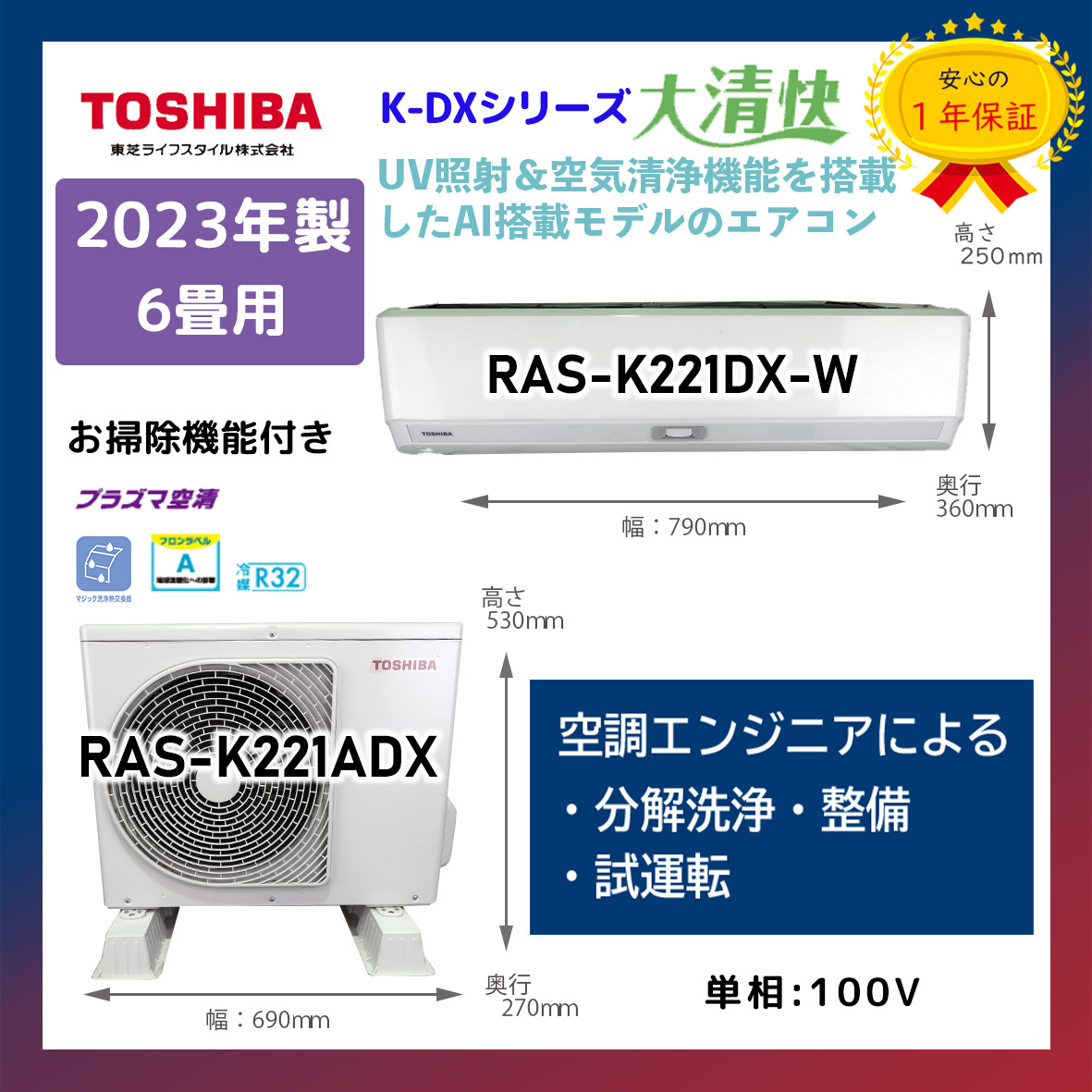 型式 | 室内機 RAS-K221DX-W 室外機 RAS-K221ADX |