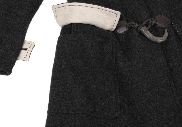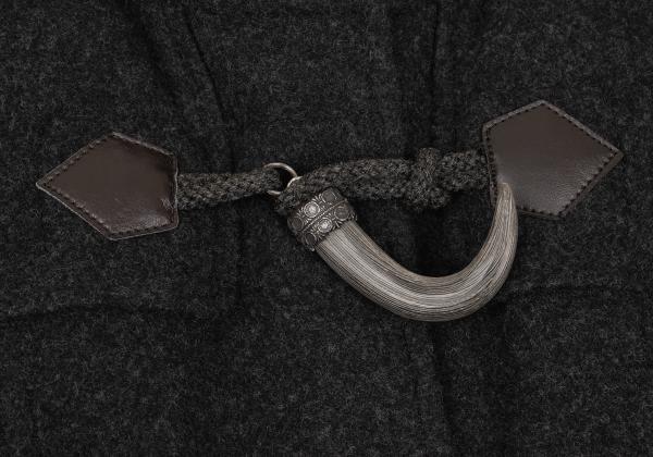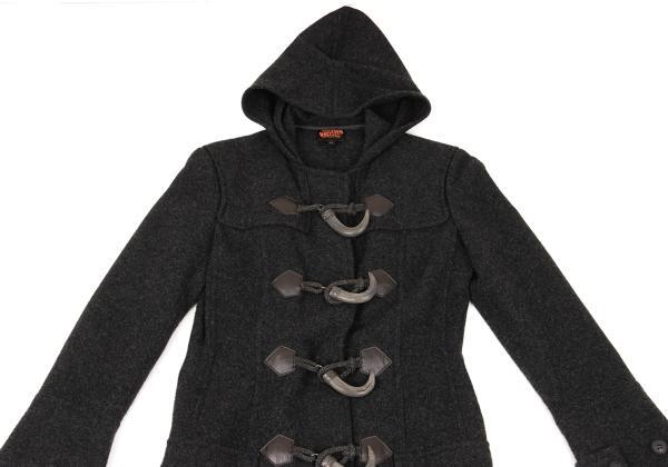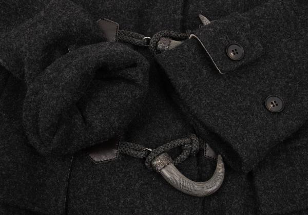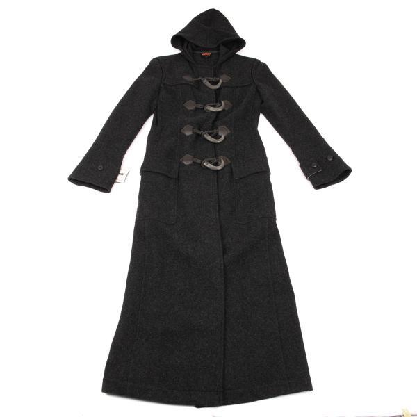 ジャンポールゴルチエJean Paul GAULTIER ウールファングボタンフーデッドロングダッフルコート チャコール40 |