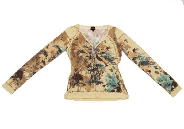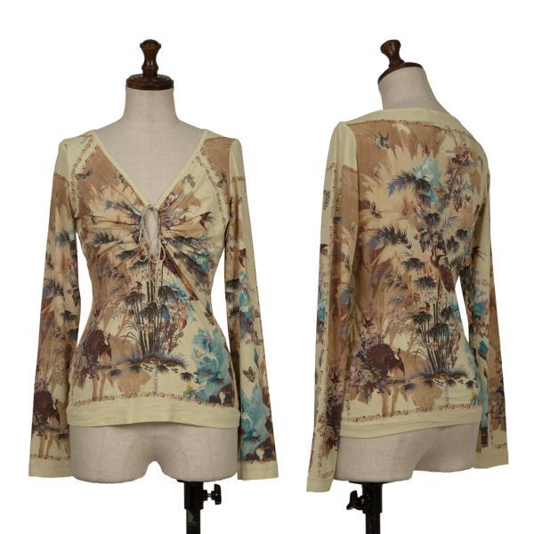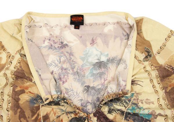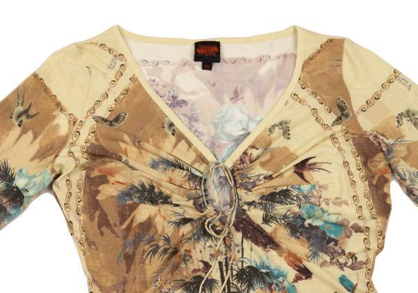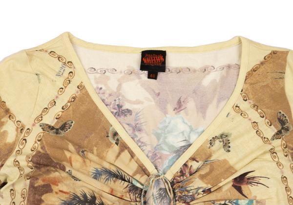 ジャンポールゴルチエJean Paul GAULTIER 鳥パラダイスプリントフロントギャザーカットソー ベージュマルチ40 |