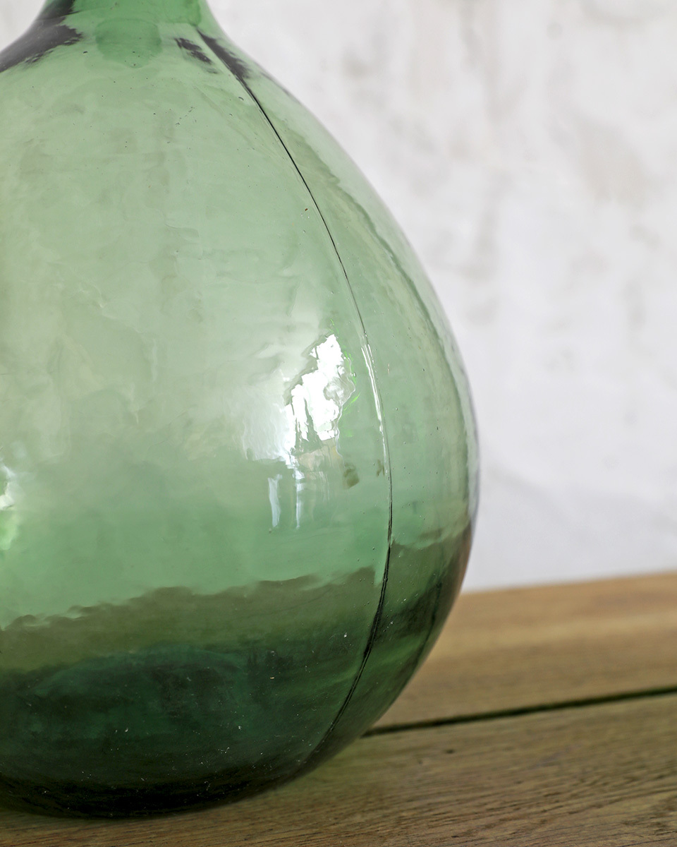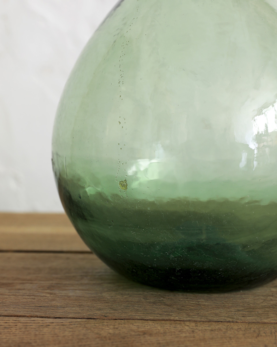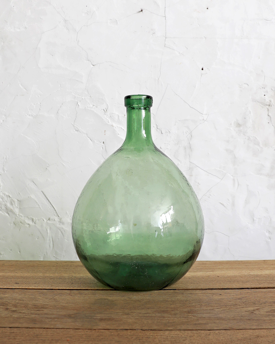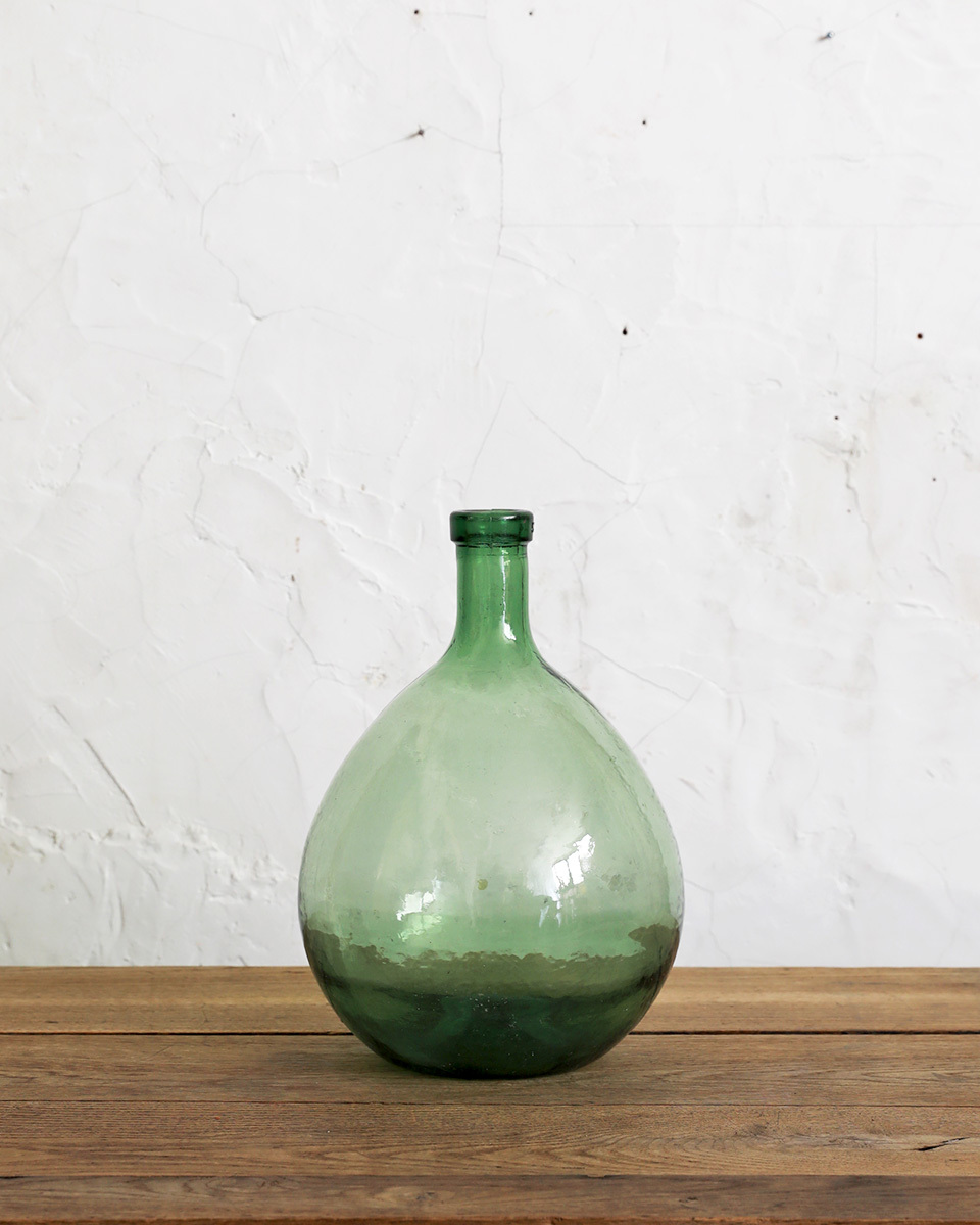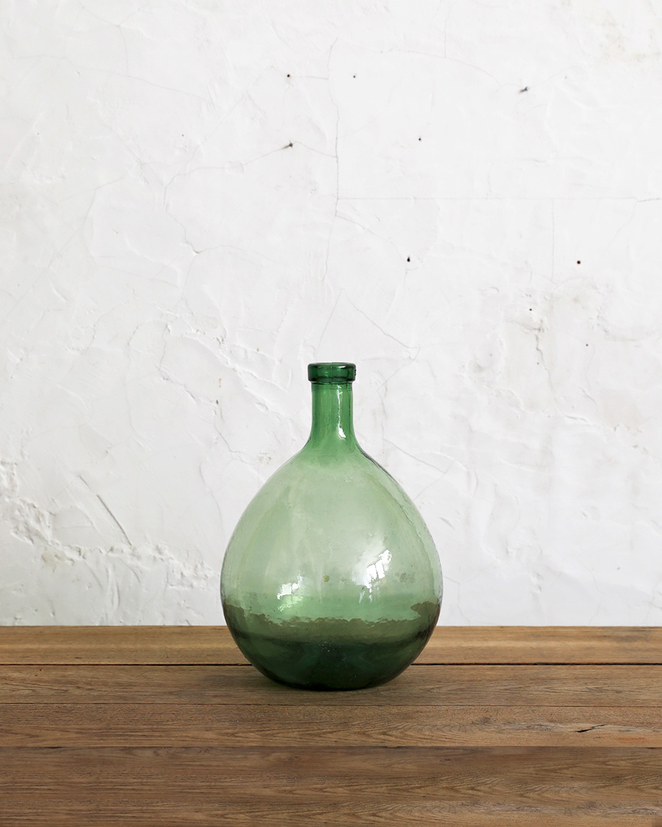 From : France ぽってりとしたシルエットに爽やかな グリーンカラーが愛らしいデミジョンボトルです。 厚みのあるガラスにアンティークガラスならではの 波打つ質感や揺らめきが魅力的なガラスボトル。 もともとは自家製のリキュールを入れるのに使われており 5Lサイズの小さくぽってりとしたシルエットが愛らしく また、古い手拭きガラス特有の製造時に出来る 気泡やシワなどが趣を感じさせてくれ そのままディスプレイするのはもちろん、フラワーベースとしても インテリアのディスプレイに取り入れやすいアイテムです。 アンティーク品になりますので経年によるキズや擦れ くすみや白濁などがある場合がございます。 ボトル内に小さな汚れ等が付着しております。 アンティーク特有の風合いとしてお楽しみくださいませ。 |