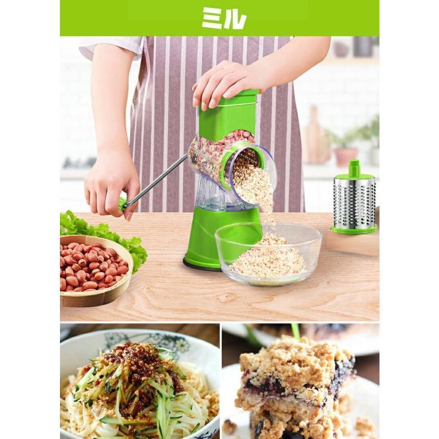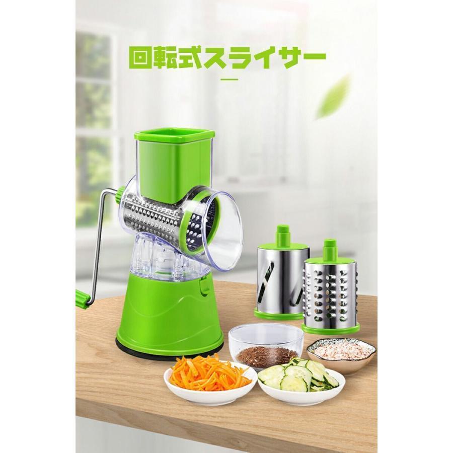スライサー 手回し式 セット 回転式 手動チーズスライサー 千切り 野菜スライサー 3種類ブレード 多機能 千切り器 野菜カッター ナッツ