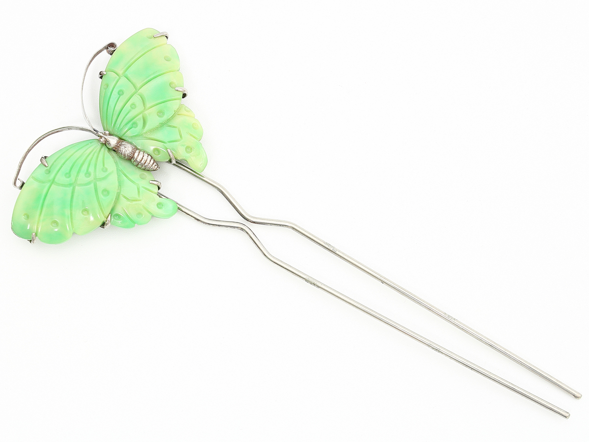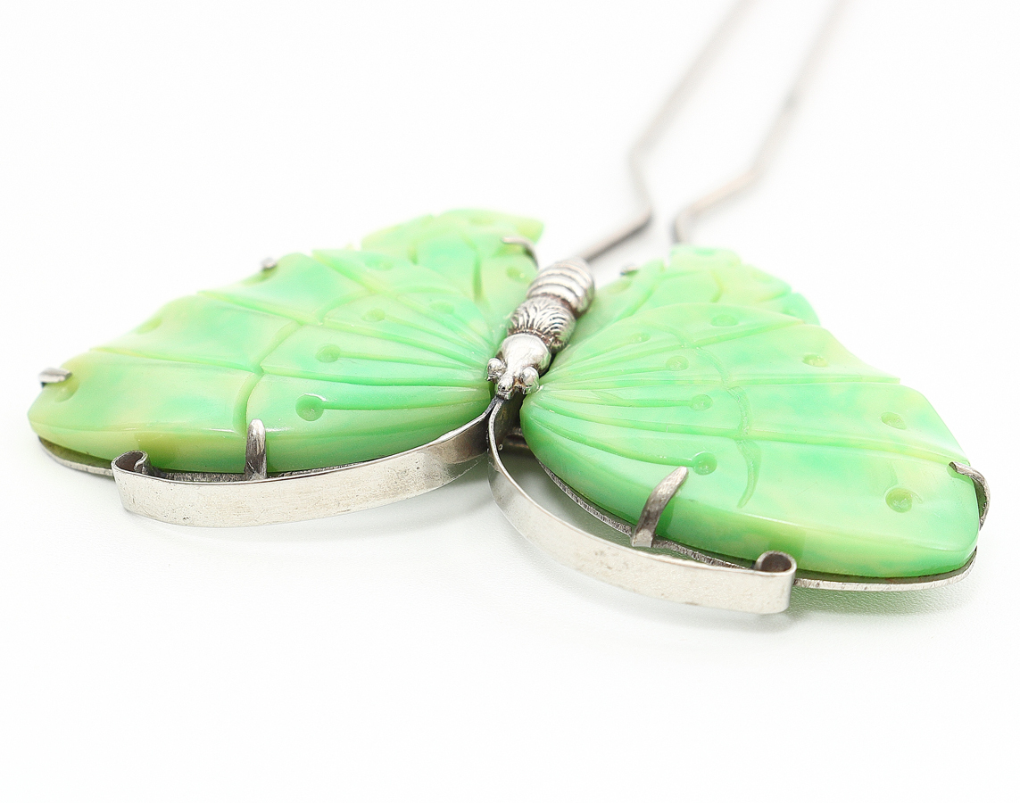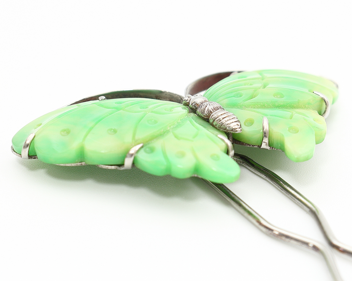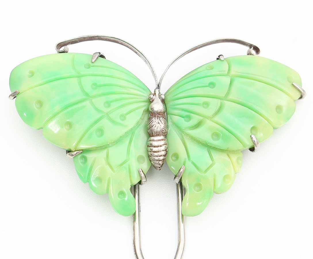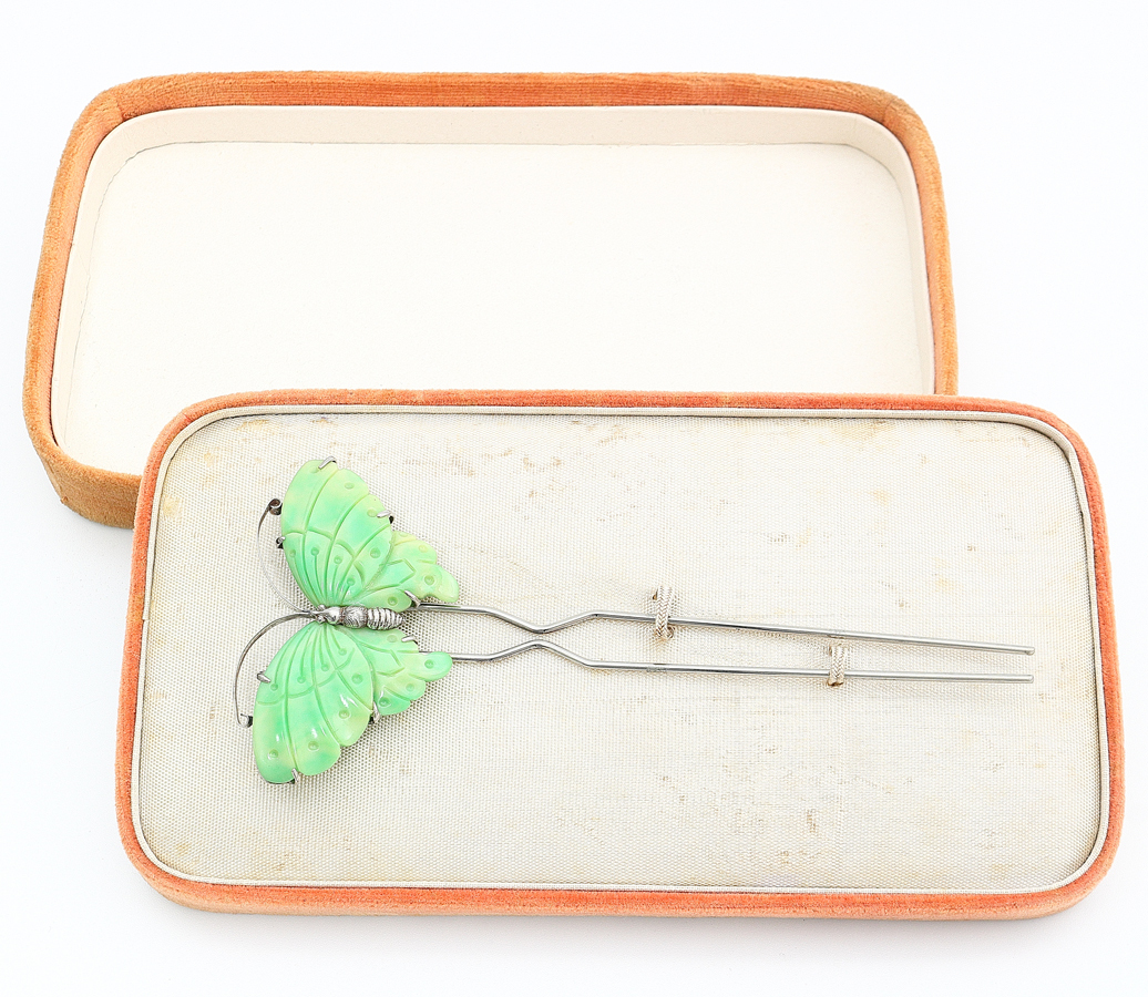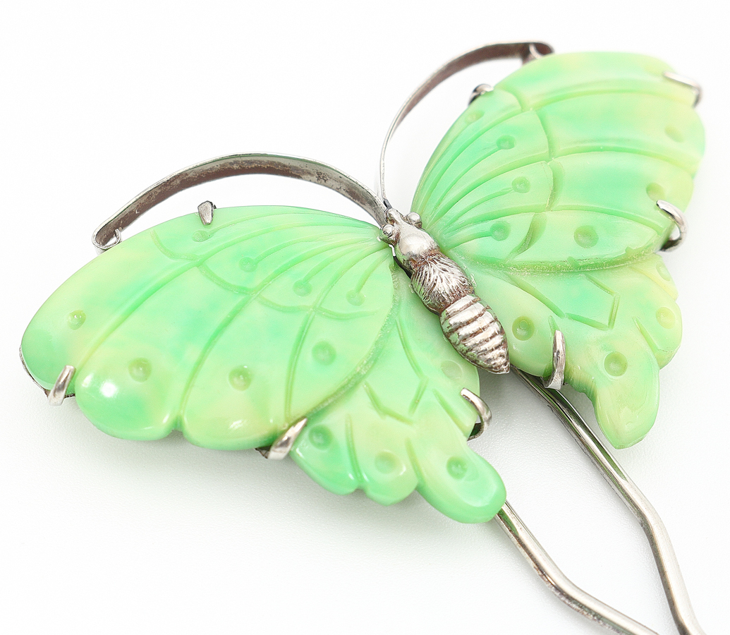 寸法・・・全長12.2cm 蝶の最大幅5.3cm 状態・・・問題なし 詳細・・・羽は樹脂製 / ケース入り | |