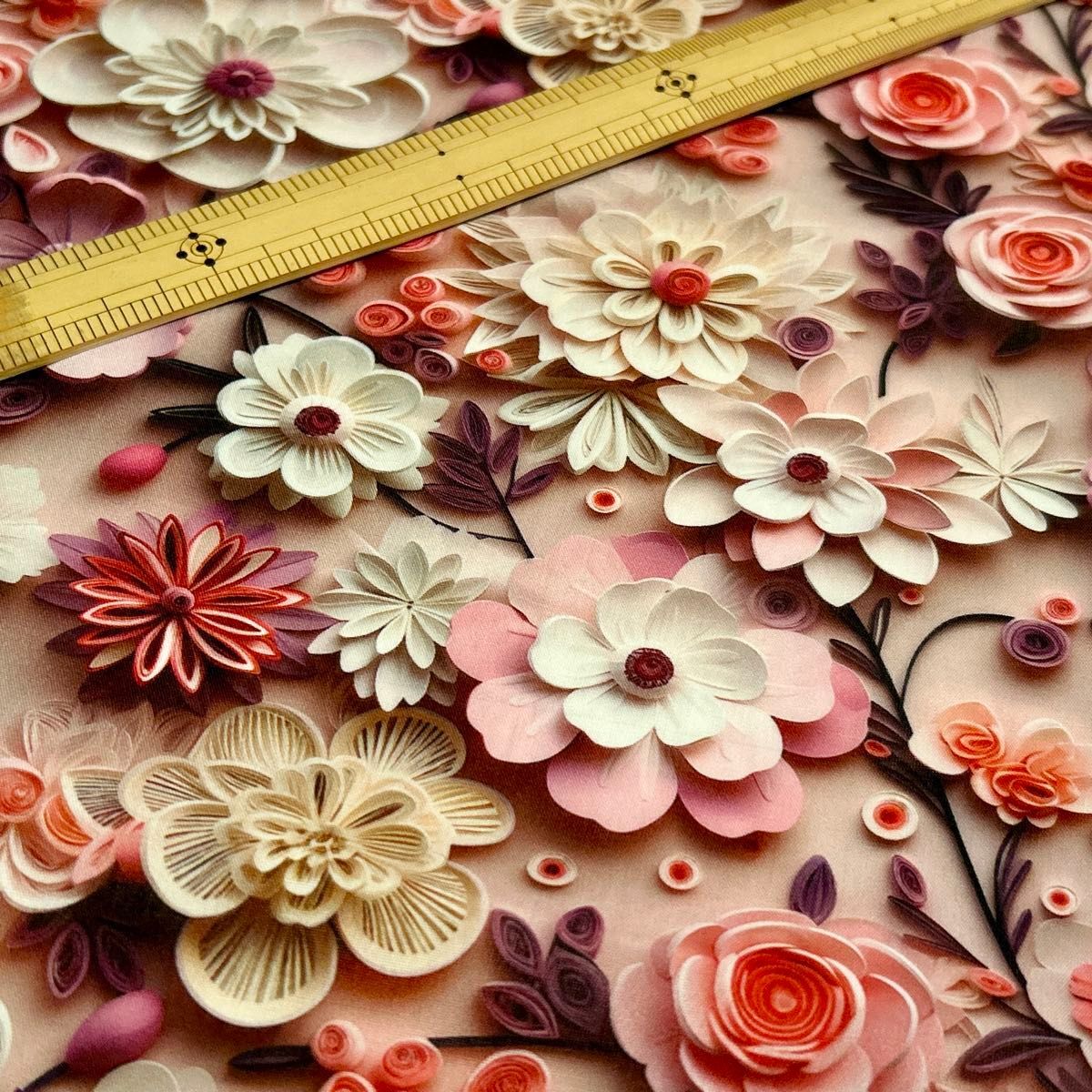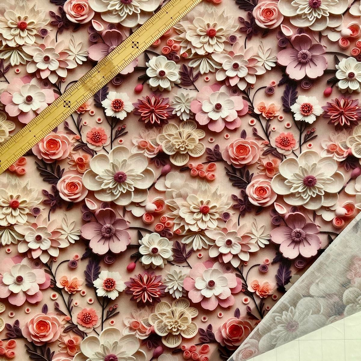 D56 3D立体プリント生地 花柄 紫の花 ポリコットン