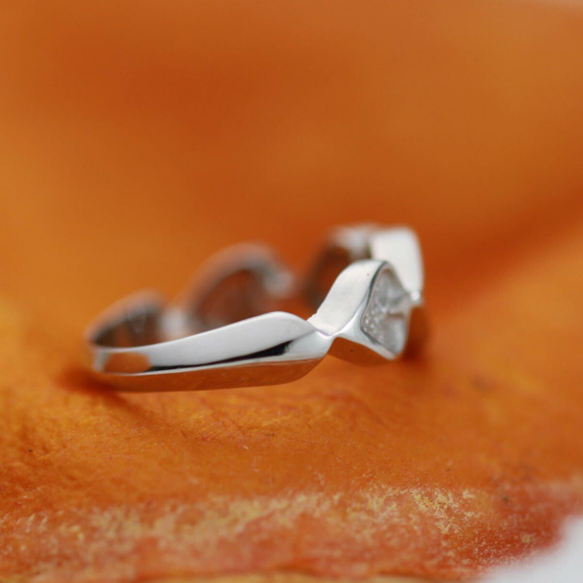 ハートをモチーフにした幸せのベビーリング。大小のハートを並べ、中心は向かい合わせに。