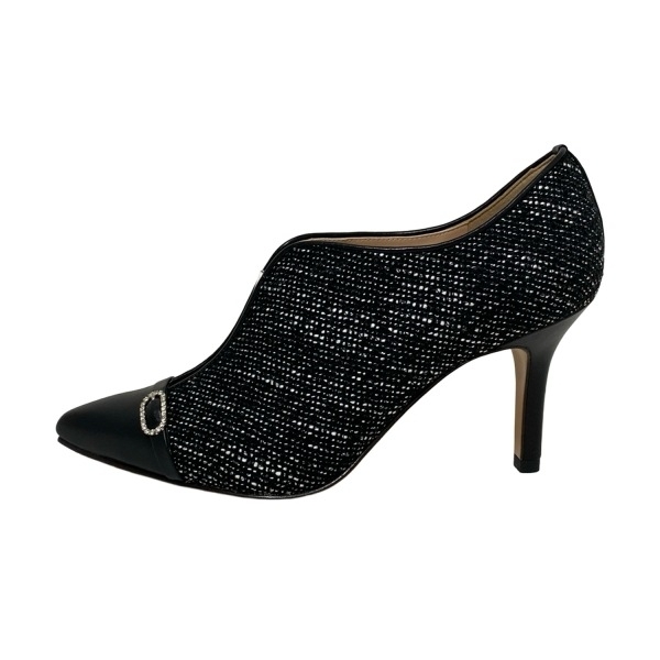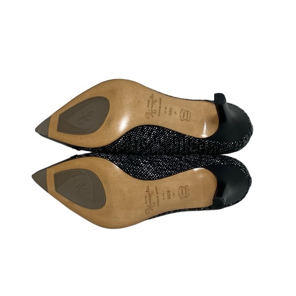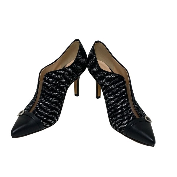 ギンザカネマツ GINZA Kanematsu ブーティ 22 1/2D - レザー 黒×白×クリア レディース ラインストーン 美品 靴