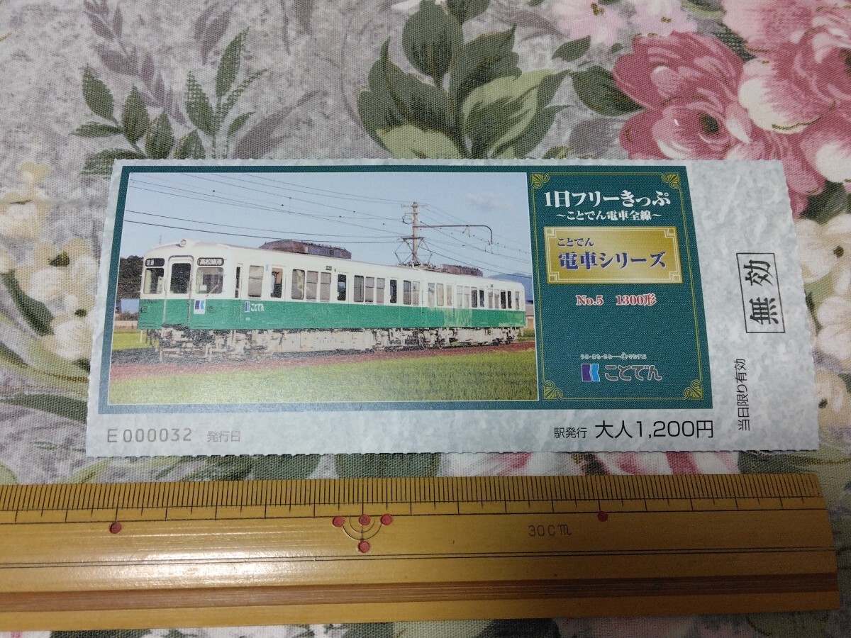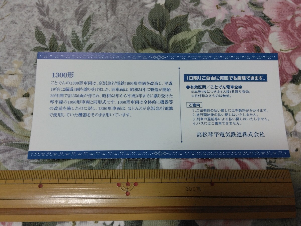高松琴平電鉄「ことでん電車シリーズ 1300形」1日フリーきっぷ(利用不可)