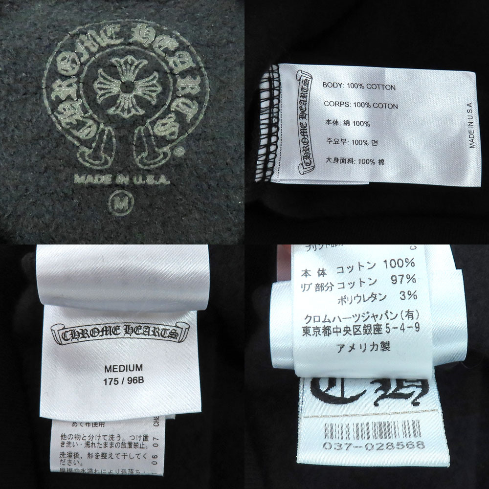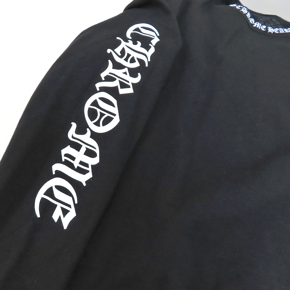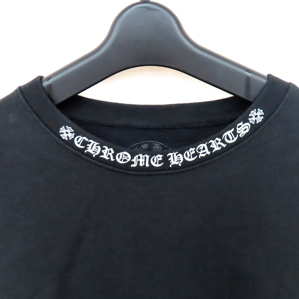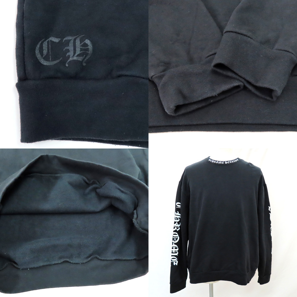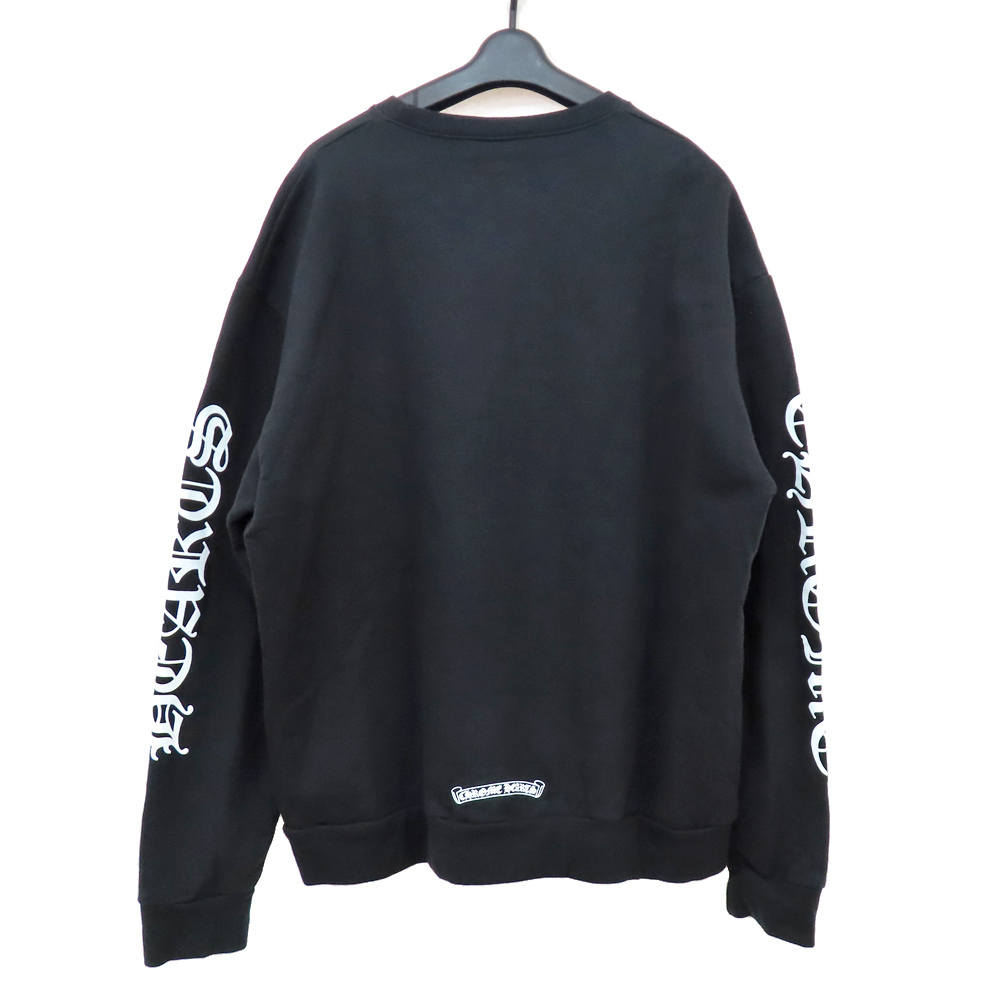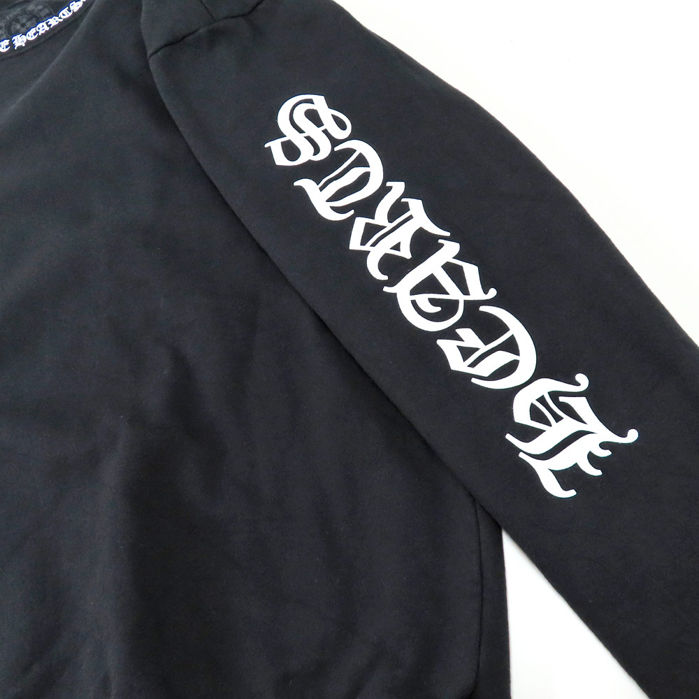 【名古屋】クロムハーツ ネックロゴ クルーネック スウェットシャツ トレーナー 袖ロゴ プリント ブラック Mサイズ 黒