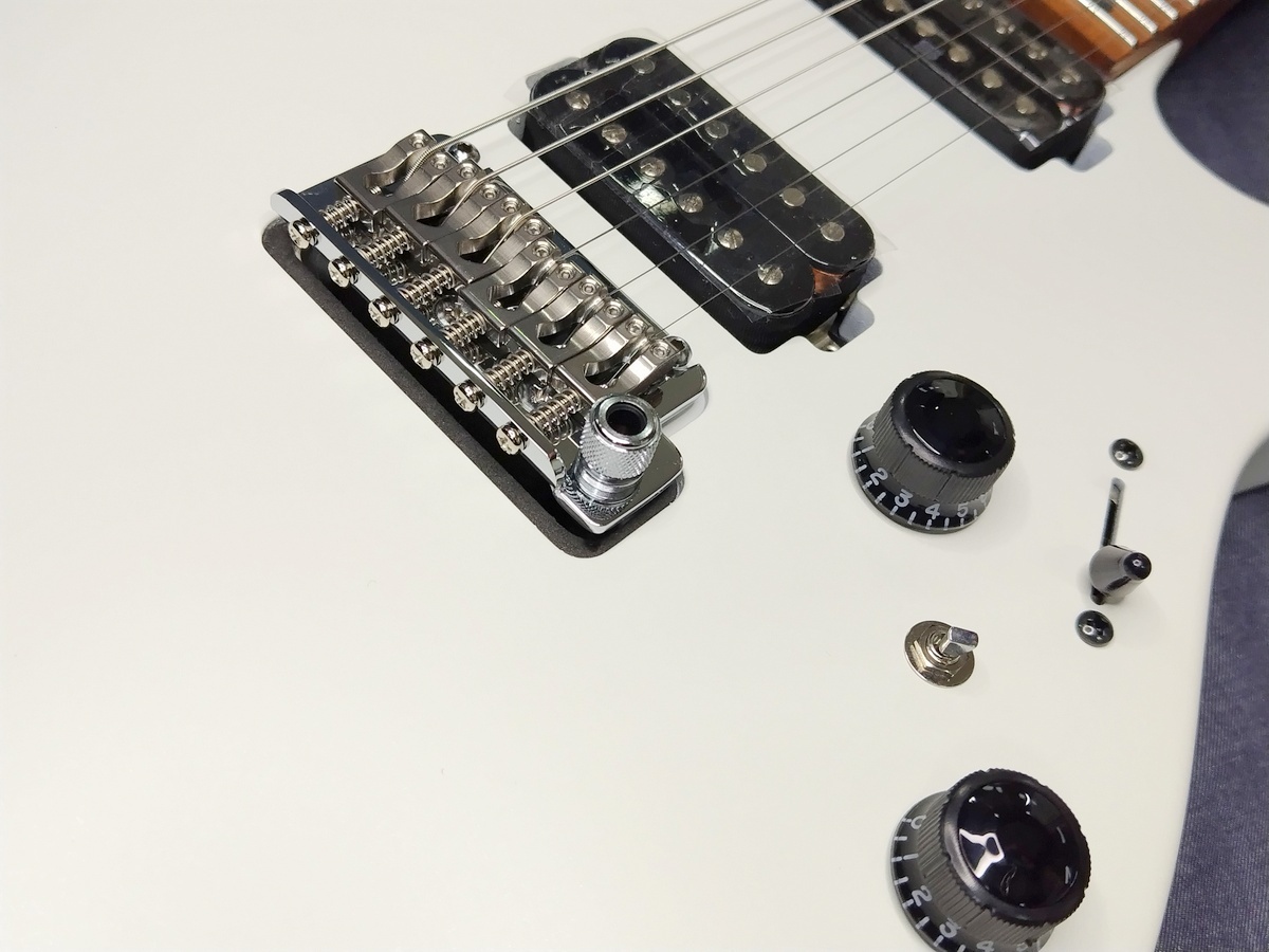 ハードウェアにはGotoh Magnum Lock machine headas、T1802 tremolo bridgeを搭載。