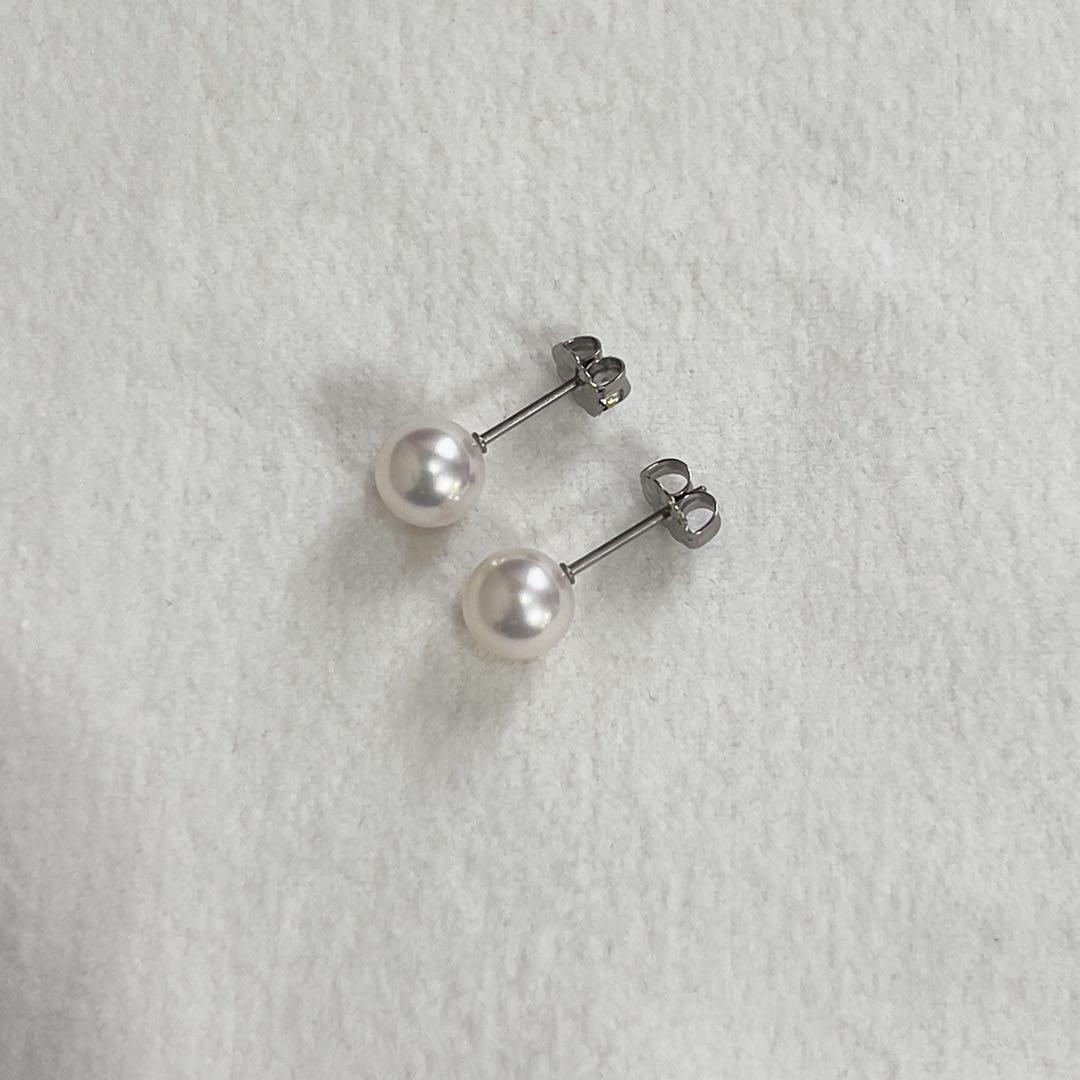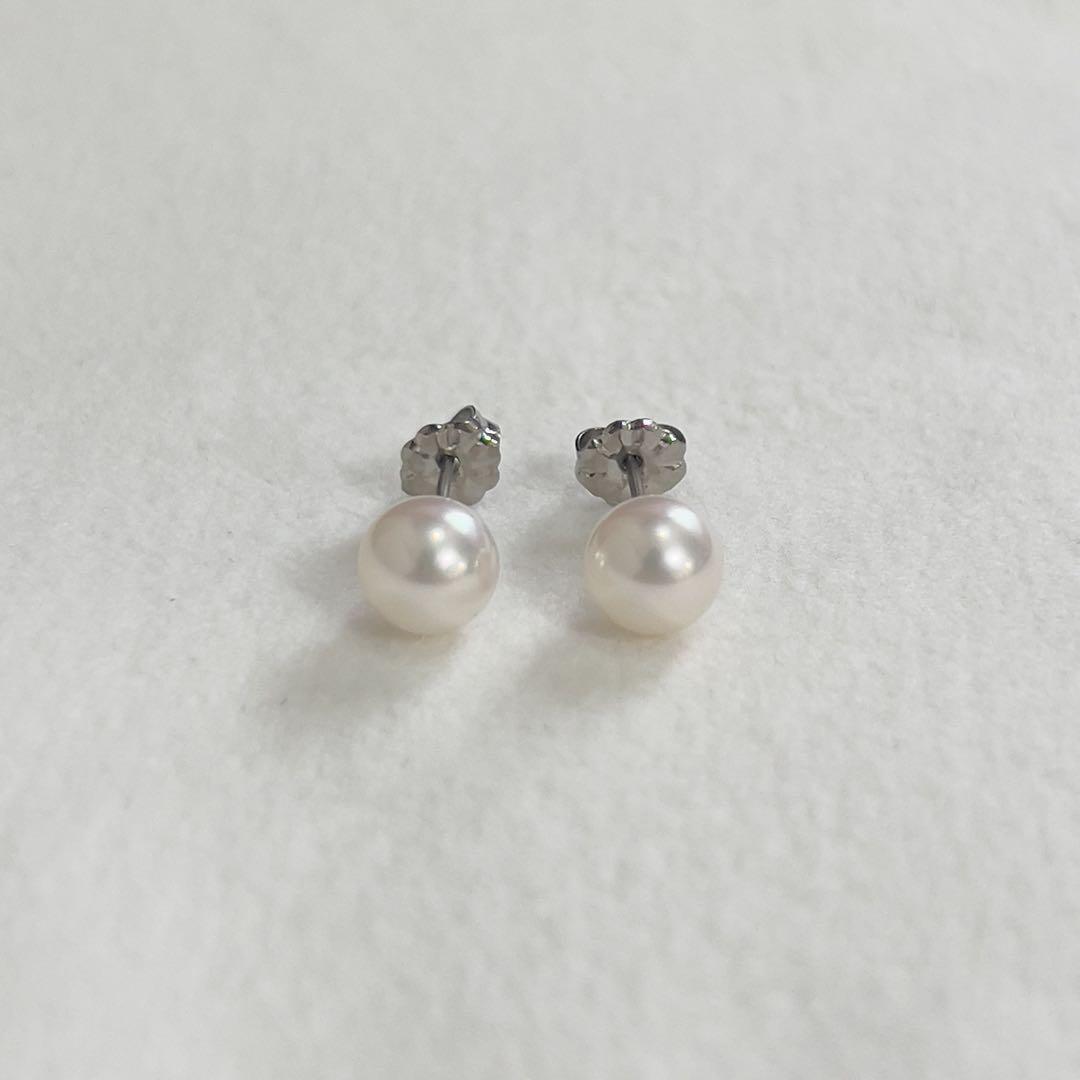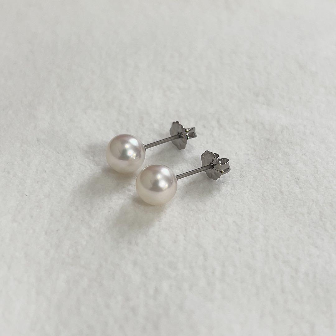 人気の7-7.5ミリサイズ、あこや真珠の一粒パールピアスです。