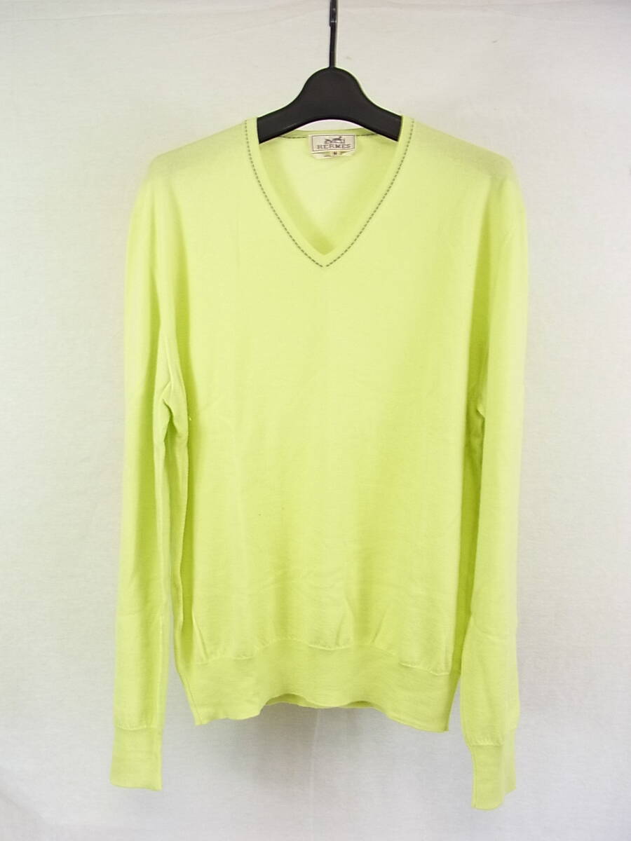 エルメスのカシミア100%Vネックセーター使用品です。 サイズはM、着丈67cm・肩幅47cm・袖丈65cm・身幅53cmになります。 素材はカシミア100%、状態は左袖に少々汚れの付着が見られますが全体的には特に難も無く着用に問題ございません。 この機会に是非どうぞ☆ 商品管理番号(42502) M3/21 | |