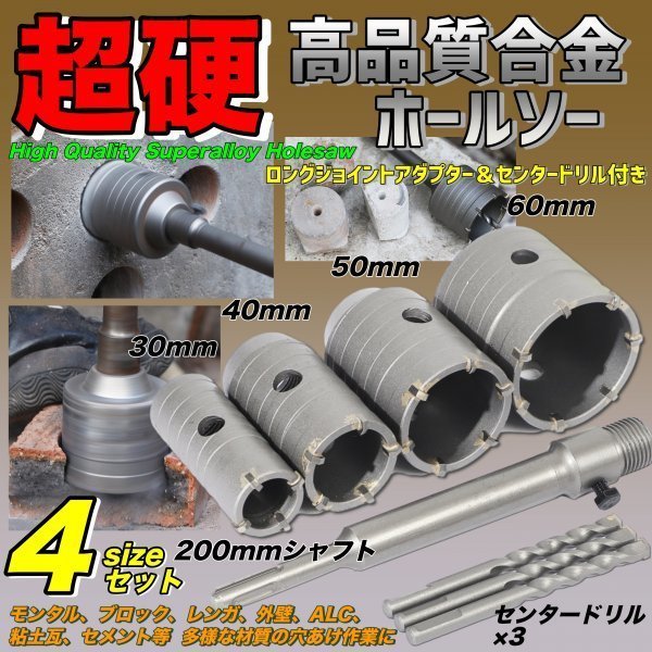 大容量 コンクリ コンクリートドリル セット ホルソー ホールソー ロング ドリルビット SDSプラス 30mm 40mm 50mm 60mm モルタル 外壁 人気 | |||