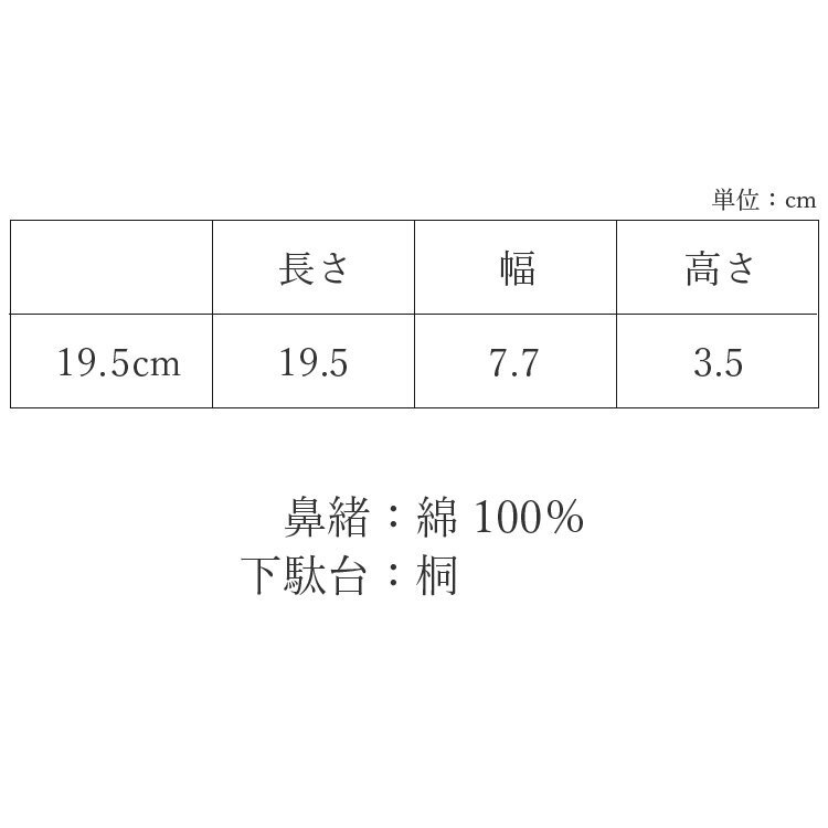 | 素材 | 鼻緒:綿 100% 下駄台:桐 |