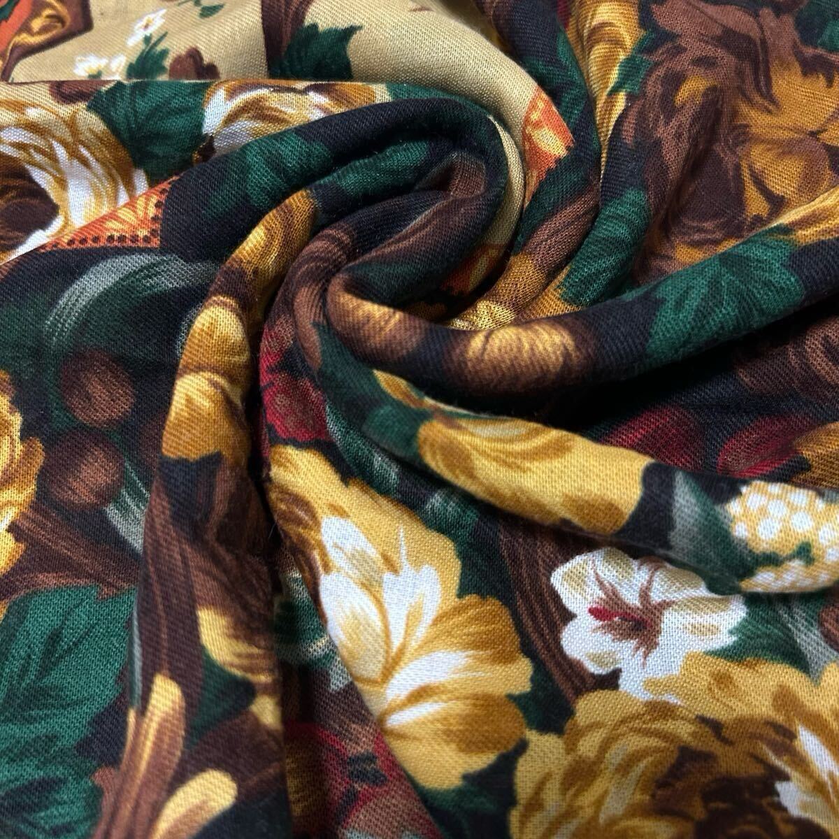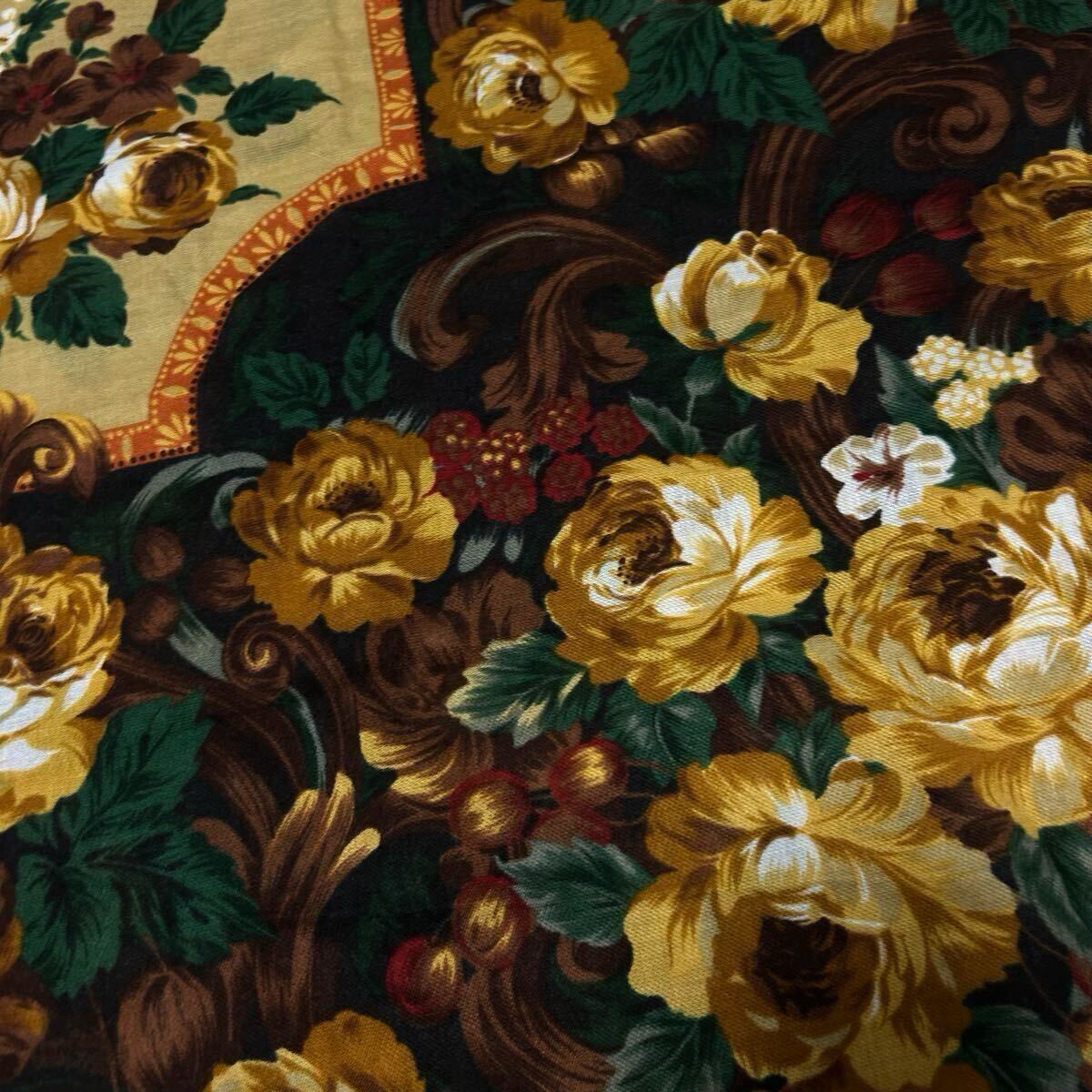 落ち着いた色味ですが、花の総柄が