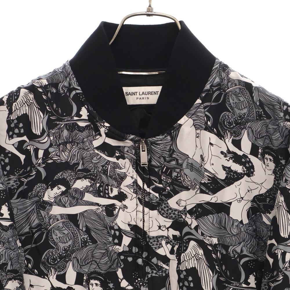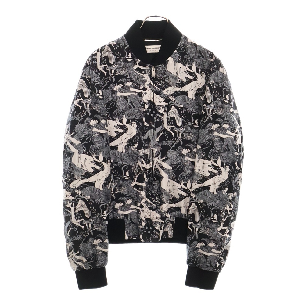 サンローランパリ PRINTED SILK BOMBER JACKET 総柄 プリンテッド シルク ボンバージャケット ブラック/ホワイト 505991 Y356S