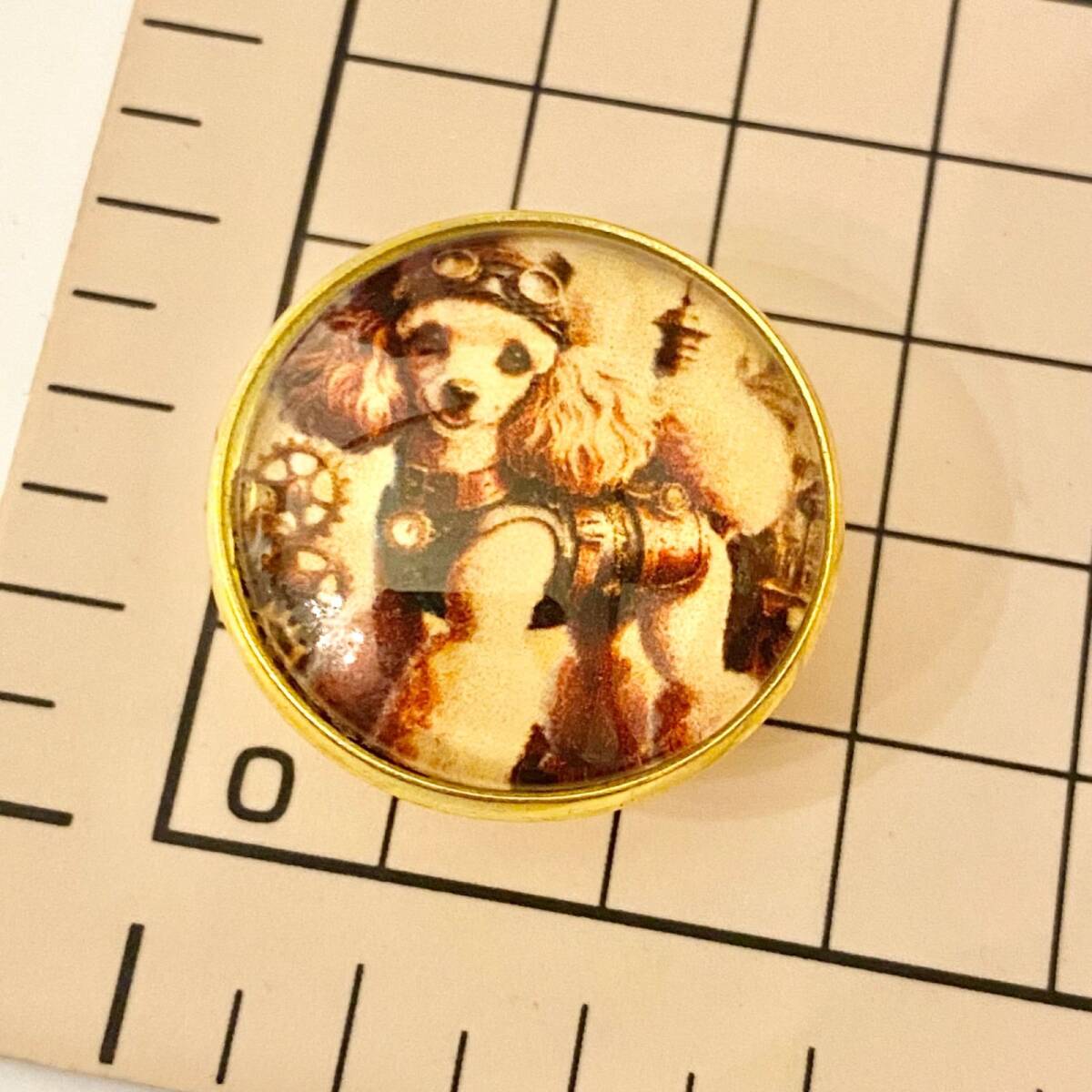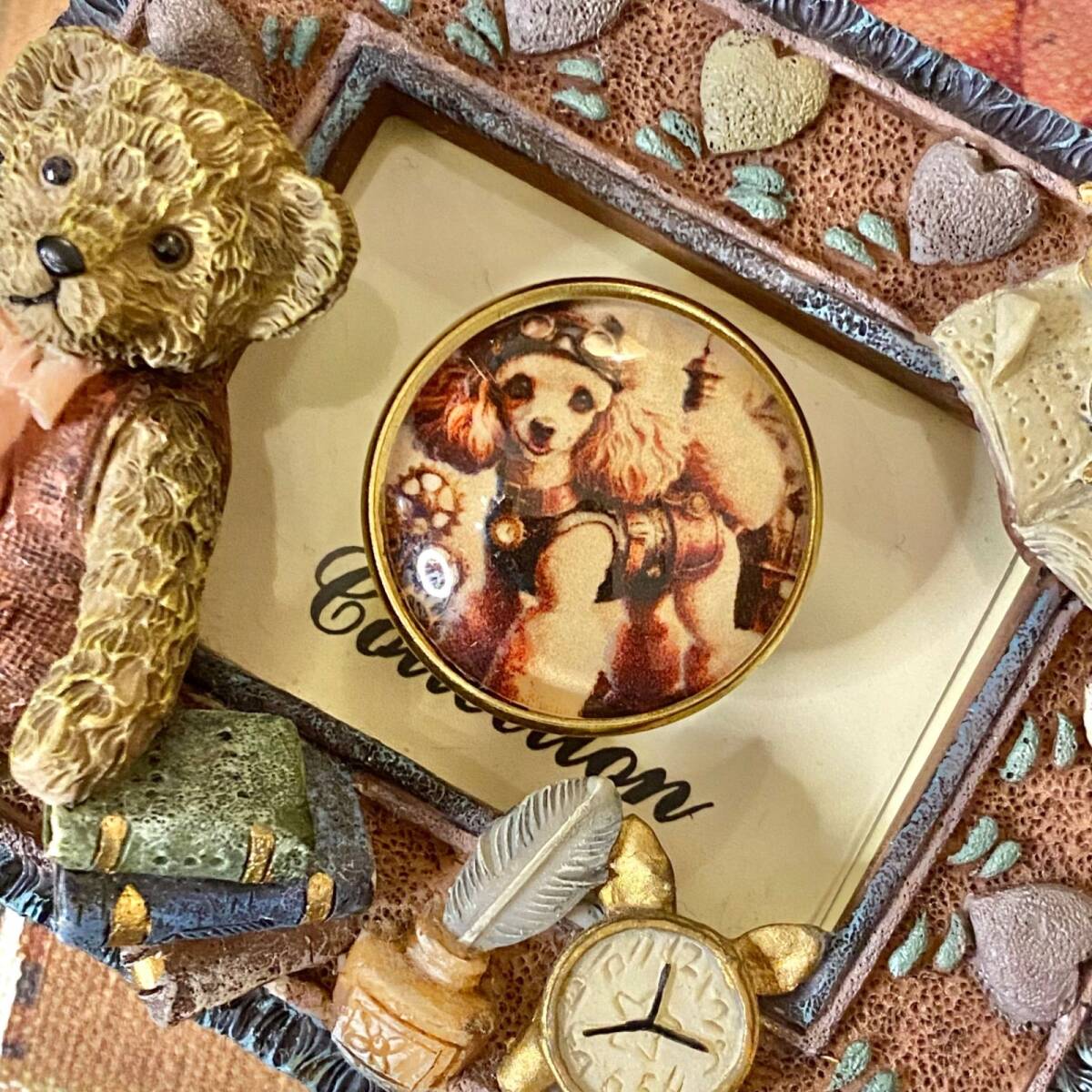 【着物リメイク 帯留め ガラス 和洋折衷 和ロリータ ハンドメイド アクセサリー 歯車の街に現れた、優雅なプードル GK-88】