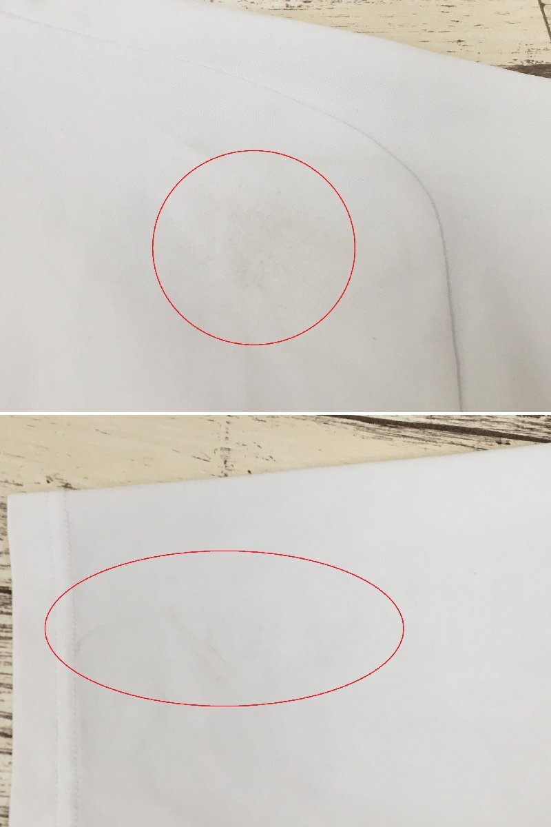 サイズ M 身幅 約54cm 着丈(前) 約65.5cm 着丈(後ろ) 約69cm 裄丈 約46cm 状態 前の左肩に若干スレによる毛羽立ち、薄っすら黒っぽいシミがあります。(画像6上、7上) 前の裾付近、首回りの内側、右袖、後ろの左側に薄っすらシミがあります。(画像4下、5上、6下、7下、10) カラー ホワイト ・中古品となりキズ、ヨゴレ、使用感などイタミがあります。 ・ご利用のモニタ等の環境により色味が異なって見える場合があります。 ・採寸には個人差がありますので、ご参考程度にお考えください。 |