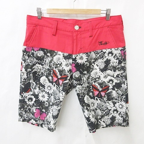 ダンスウィズドラゴン Dance With Dragon ゴルフ スポーツウエア ハーフパンツ ショート 花柄 黒 赤 ブラック レッド 3 メンズ