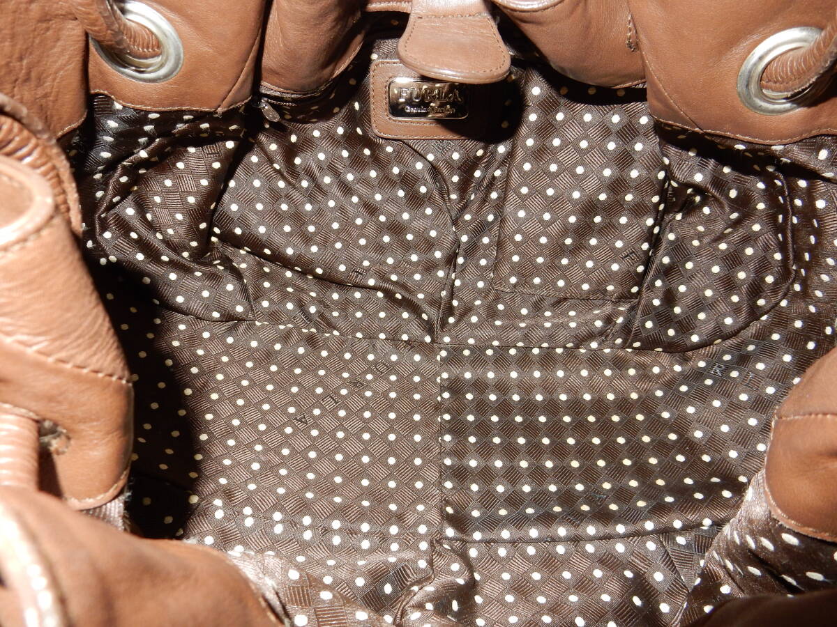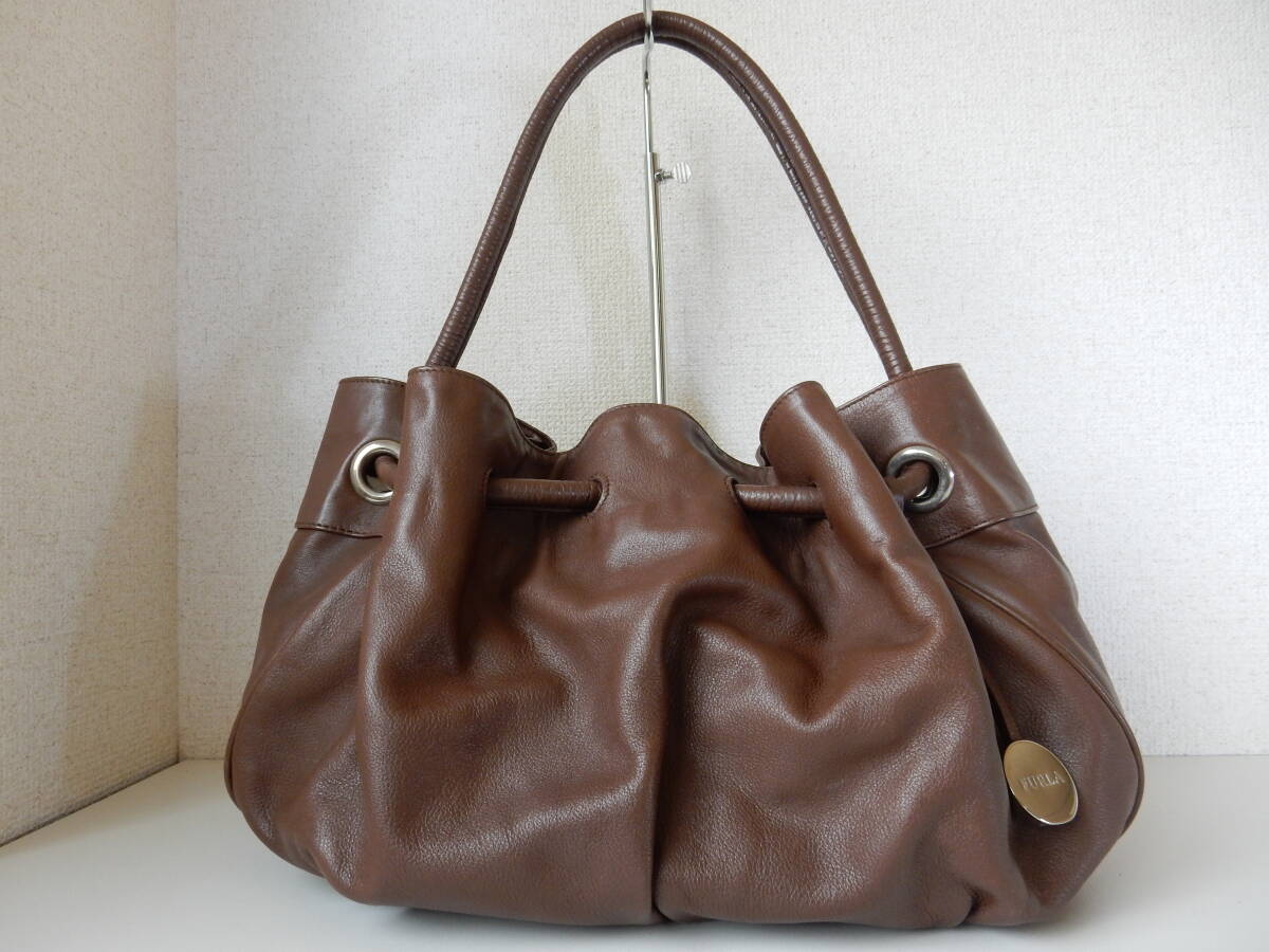本革☆FURLA(フルラ)☆B5対応☆肩掛けOK☆レザートートバッグ ブラウン(金具シルバー)