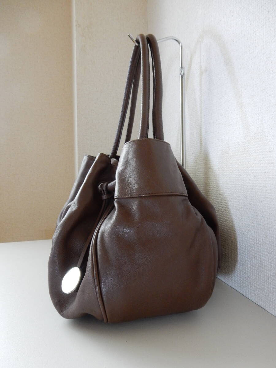丸みを帯びたフォルムにロゴチャームがアクセントとなった本革トートバッグ。