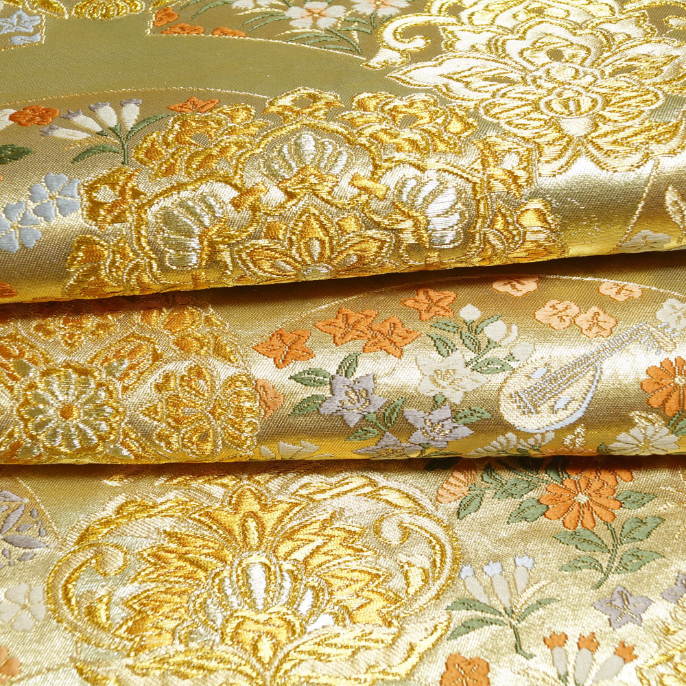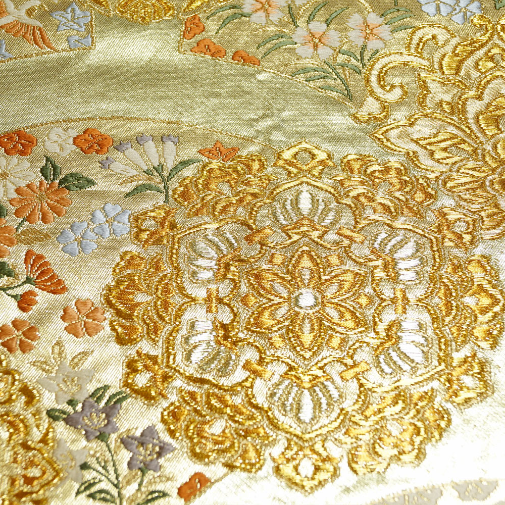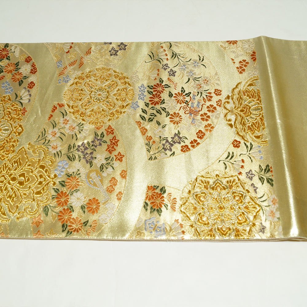 | 商品 説明 | 薄ピンク色系の地に几帳に百花などの模様が染められた付下げ訪問着と、金色系の地に華文、地紙に百花、楽器、鳳凰などの模様が織られた袋帯の2点セットです。 |