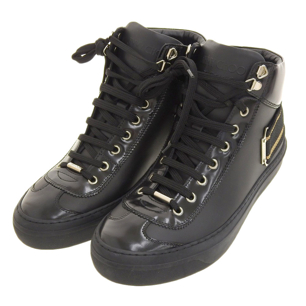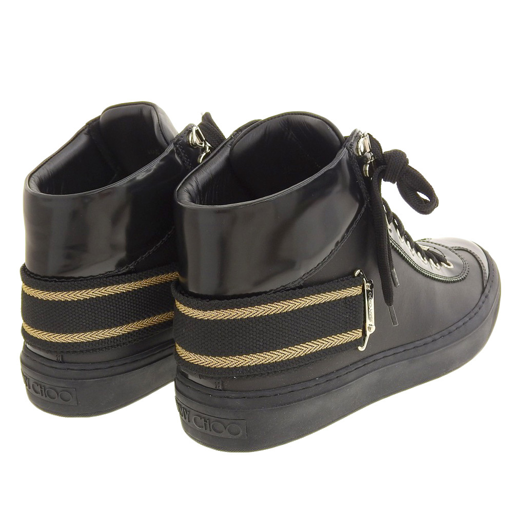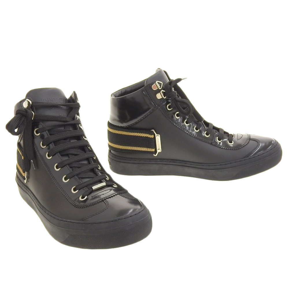 箱付未使用 ジミーチュウ 2019年商品 Argyle Strap Trainer ストラップ レザー ミッド スニーカー シューズ 41.5 26-26.5cm 黒 メンズ 旅 |