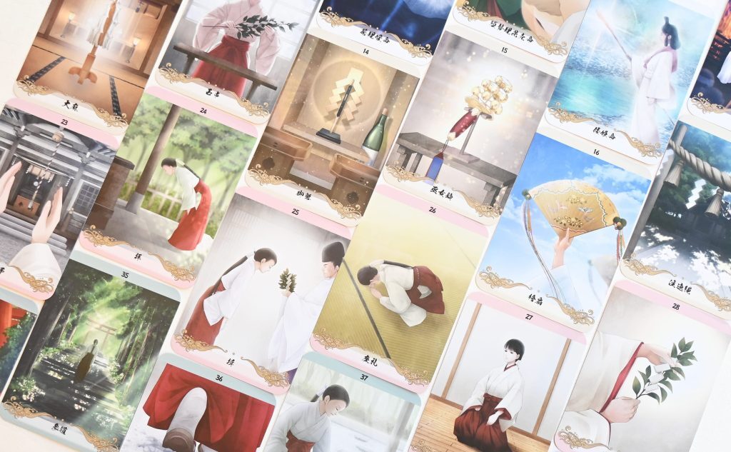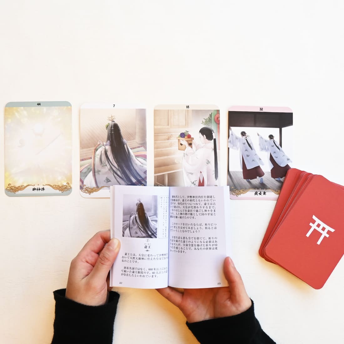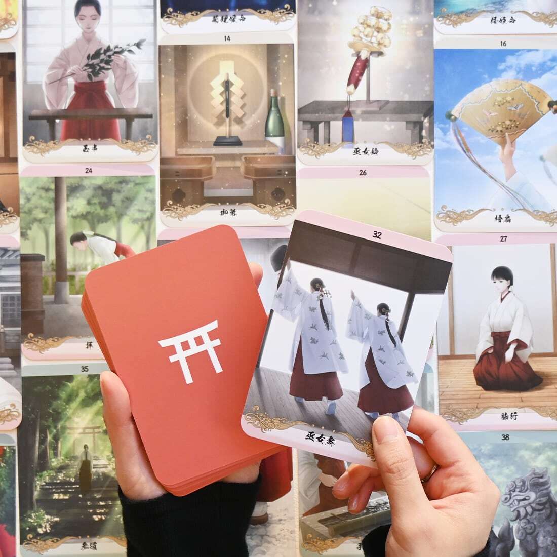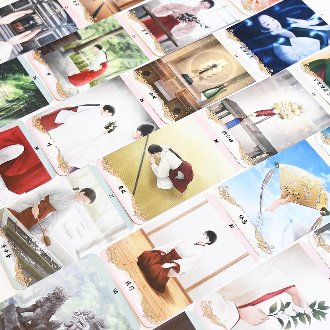 古来日本に存在する「お神籤(おみくじ)」。それは、出た結果は偶然と捉えず、神様からの託宣、神意を表していました。巫女札も同じように、44枚のカードを通して、神様からの多くの神託を受け取ることができます。