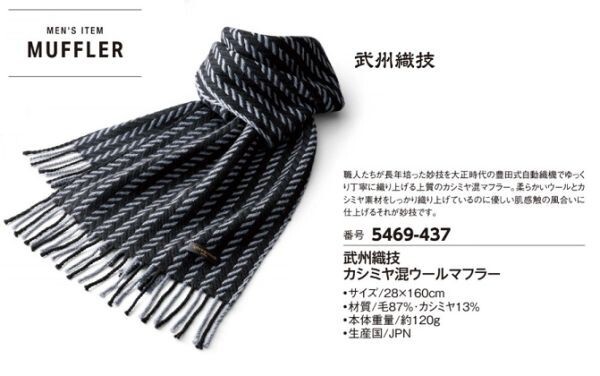 【商品番号】 5469-437 【商 品 名】 武州織技 カシミヤ混ウールマフラー |