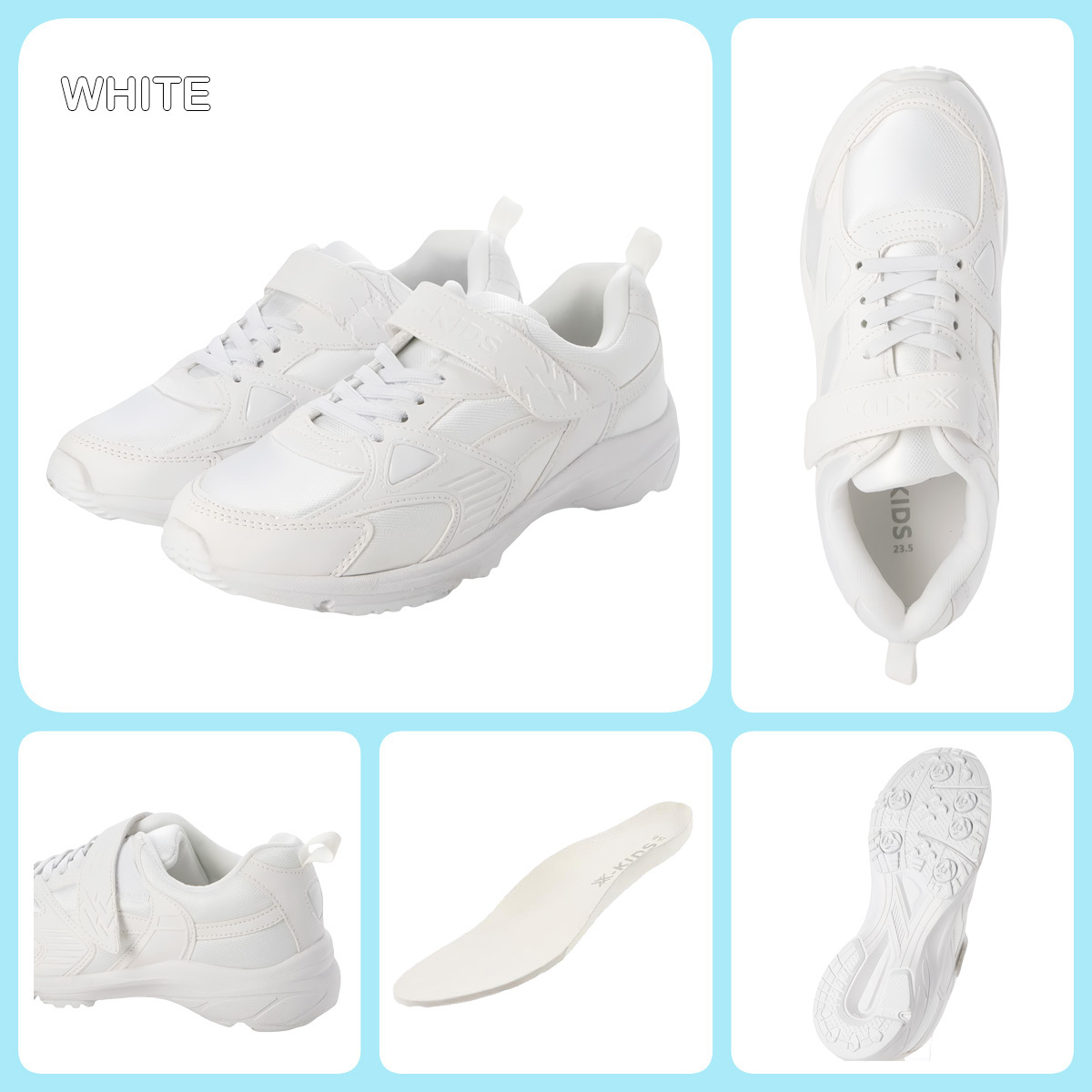 ★新品.人気★キッズ ジュニア用 スニーカー ランニングシューズ 男女兼用 運動靴 テフロン撥水加工 抗菌防臭 超軽量 防滑底 24869-wht-220