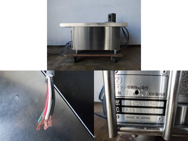 【商品仕様】 ・メーカー:エイシン ・IHコンロ ・型番:PHI-500S-V2 ・管:Y0764 ・本体サイズ:W500×D700×H510mm ・操作盤サイズ:W410×D250×H240mm ・温度調整機能有り ・プレート寸法:縦400×横330mm ・電源:三相200V 50/60Hz ・定格消費電力:5.7kW 【商品状態】 ・商品はUSED品です。 ・清掃済みです。 ・動作確認済みです。 ・USED品の為、傷・汚れ・焼けございます。 ・写真の物が全てです。 ・写真でご判断頂きますようお願いいたします。 【お支払方法】 ・銀行振込の場合は、Paypay銀行・大垣共立銀行の取り扱いとなります。 振込み手数料はお客様のご負担でお願い致します。 ・ヤフーショッピング各種支払方法に対応しております。 ・お支払い金額確定後、3日以内に商品代金+消費税+送料を御入金を下さい。 御入金確認後の発送となります。 【発送詳細】 ・日本通運2個口での発送となります。 ・北海道・沖縄・各中継営業所が入る場合は、別途御見積となります。 ・大型商品のため、リフト、又は荷受人様数名が必要となります。 ご用意頂けない場合、又は個人の方への発送は営業所止めとなります。 ・法人の方は、必ず法人名をご連絡ください。 ・配達時間のご指定はできません。 ・元払い発送になります。