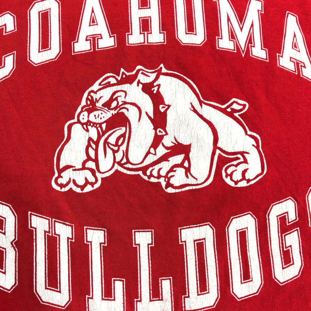 [商品管理番号] T9802 [ブランド] JERZEES/ジャージーズ [サイズ] XL [実寸サイズ] 肩幅:約54cm 着丈:約74cm 身幅:約59cm 袖丈:約23cm [主な素材] 表地 : コットン [色] レッド [仕様] 生産国 : USA製 90年代 カレッジ オクラホマ・ブルドッグス [状態] 特記事項:プリント劣化 | |||
