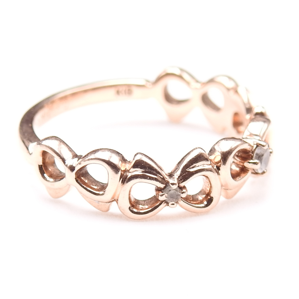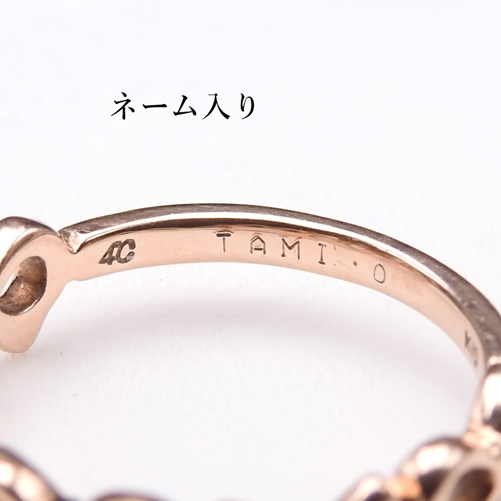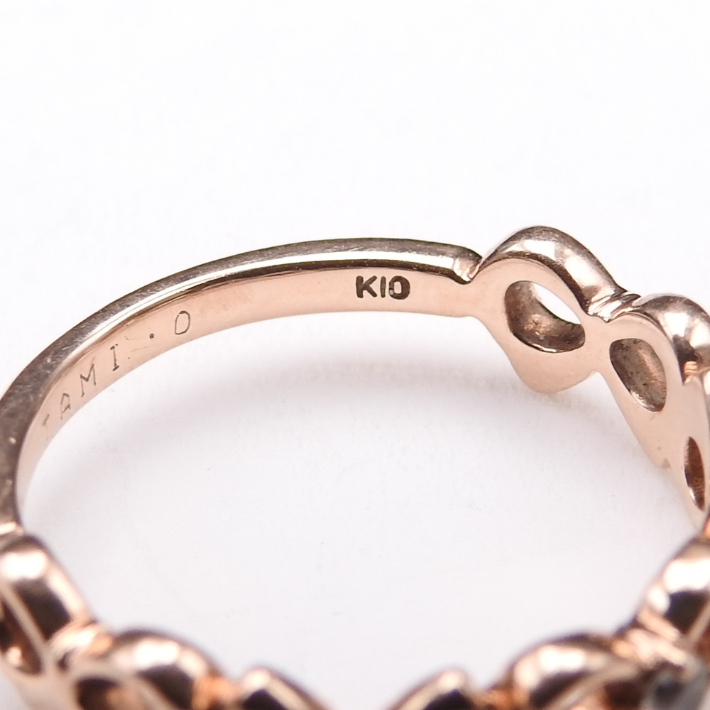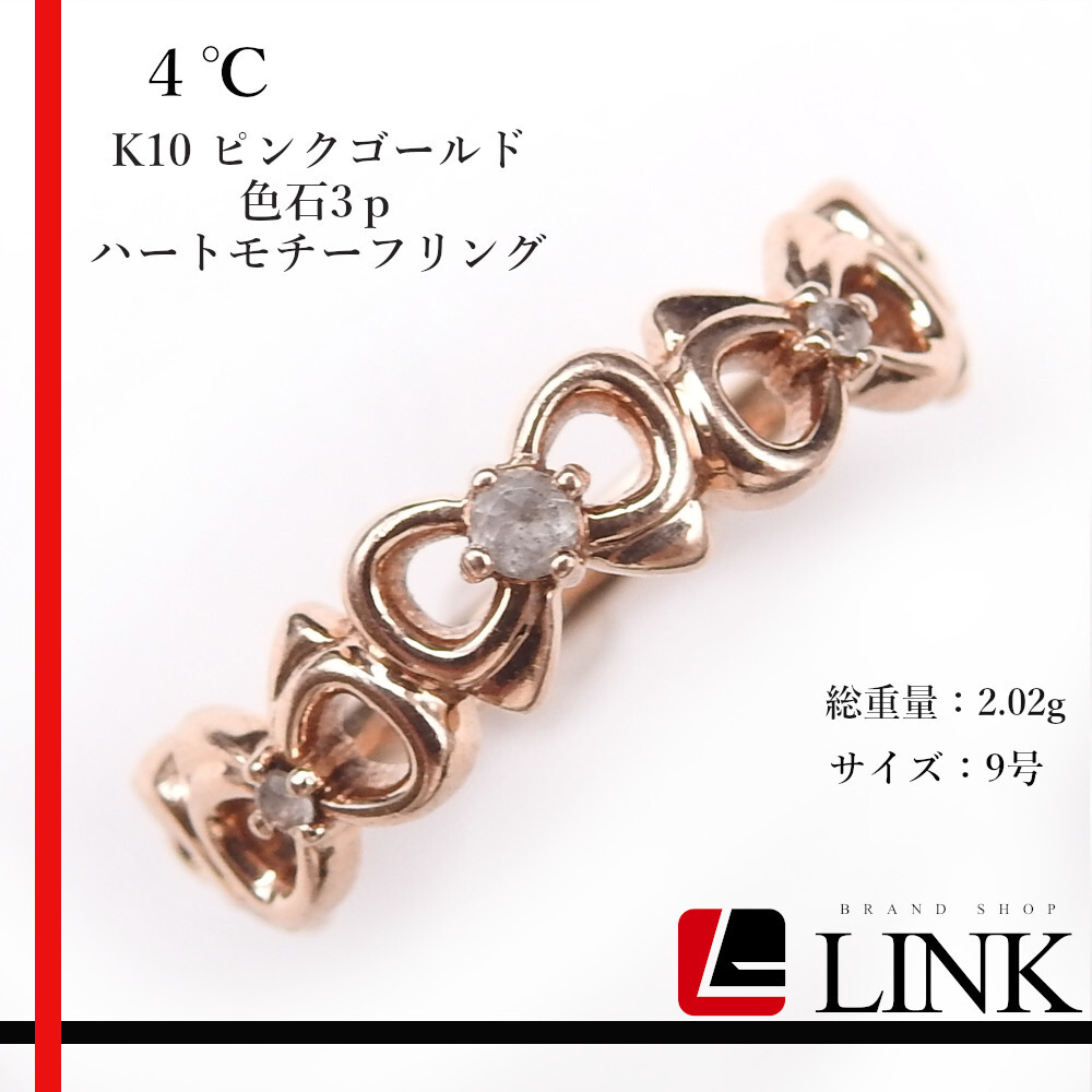 4℃ ヨンドシー K10 ピンクゴールド 色石3p ハートモチーフリング レディース 9号