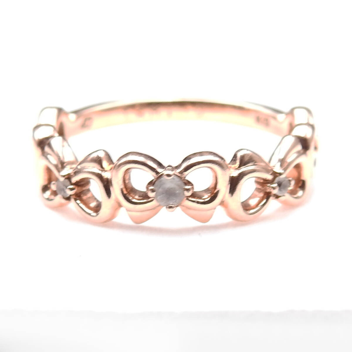 【商品名】4℃ ヨンドシー K10 ピンクゴールド 色石3p ハートモチーフリング レディース 9号