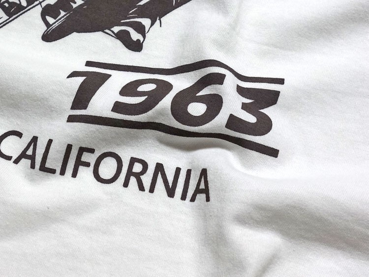 前面に大きくハンドプリントされたビンテージ感あふれるモデルに仕上がってます。