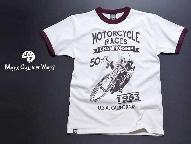 モータースポーツ好きににオススメ「MVRX OUTSIDERWORKS」のリンガーTシャツです。