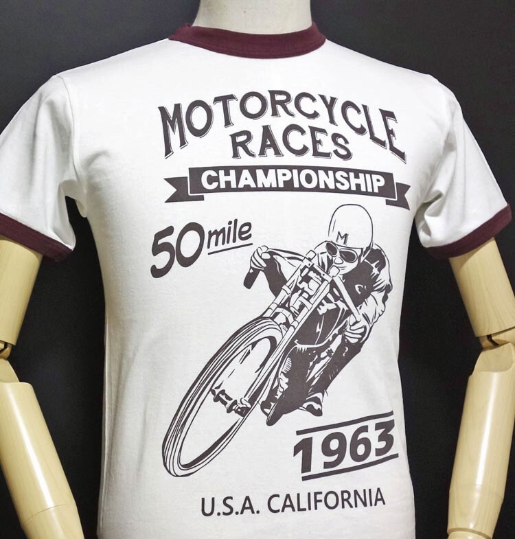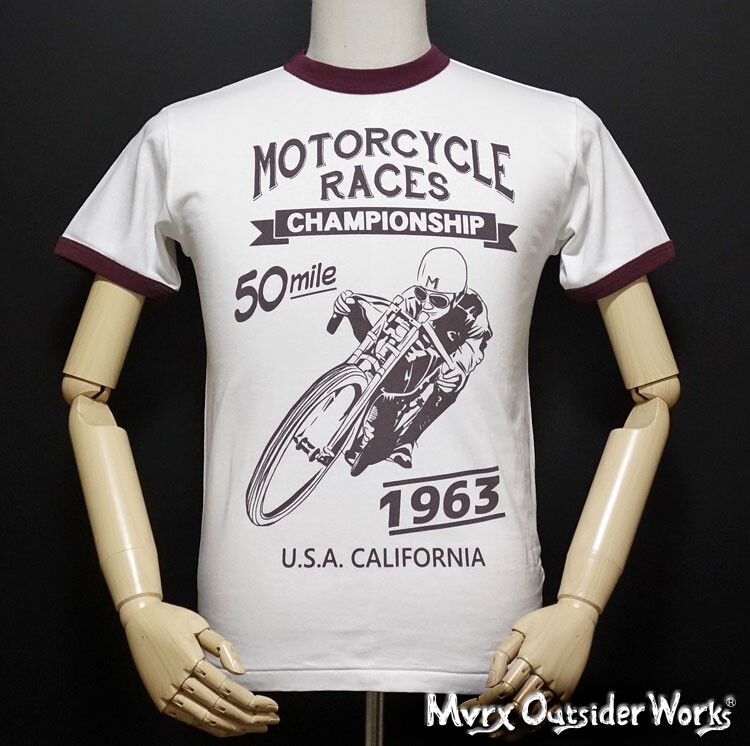 トリム Tシャツ XL 半袖 メンズ バイク MVRX ブランド MOTORCYCLE RACE モデル 白 ホワイト バーガンディ