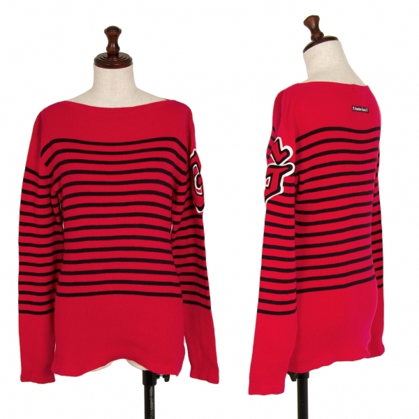 | ゴルチエジーンズGAULTIER JEAN'S コットン袖ワッペンボーダーニット 赤40 |