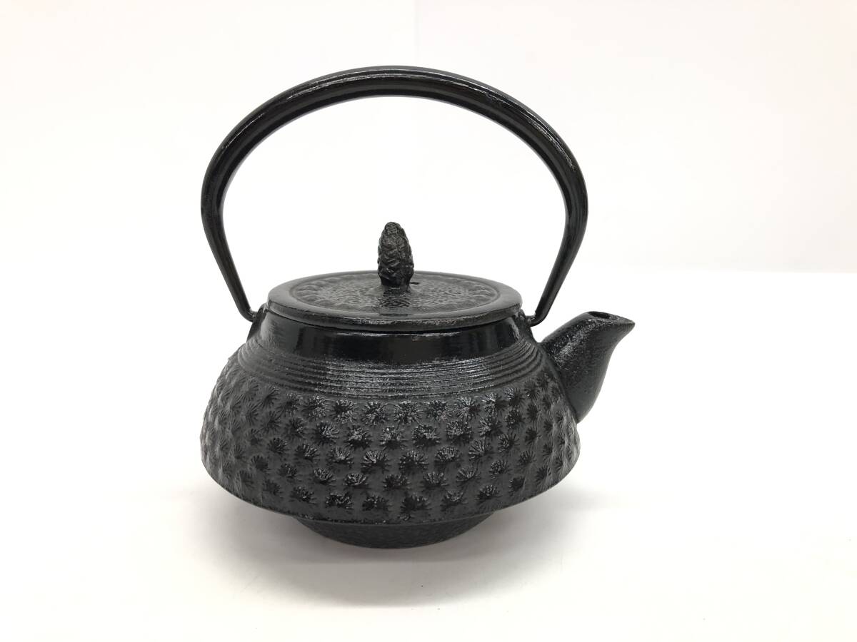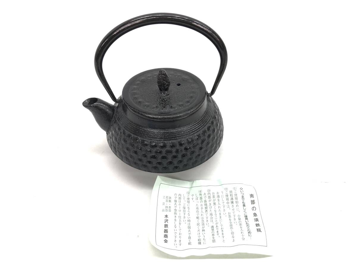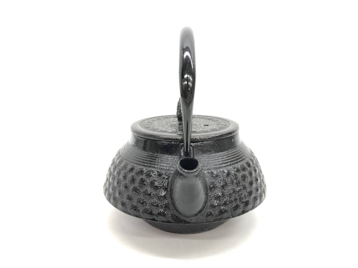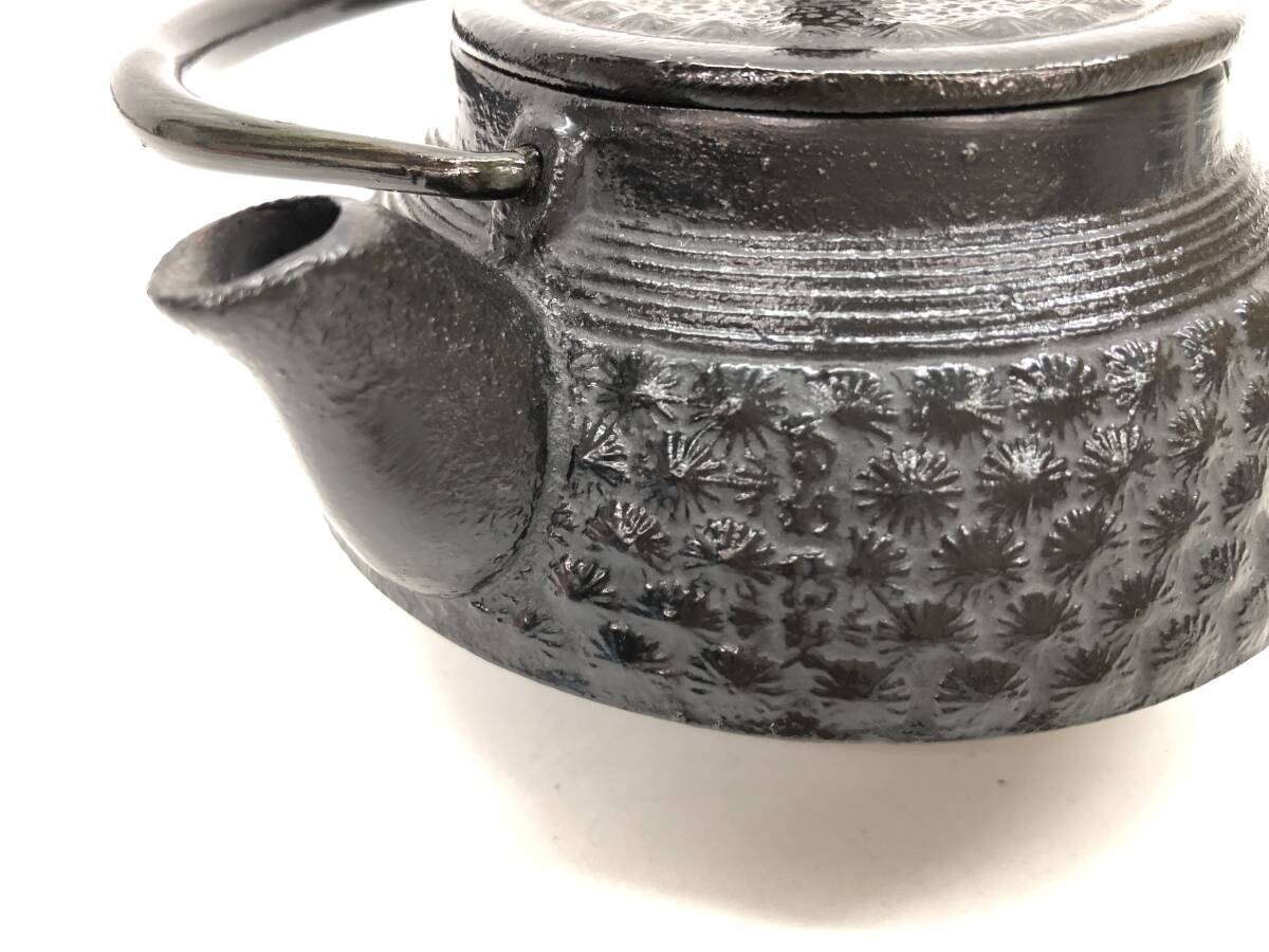 保管品 南部鉄器 鉄瓶 急須 茶注 茶こし付 茶器 煎茶道具 和食器 鉄製 鉄器 鋳物 黒 ブラック 菊霰紋 松実摘み 伝統工芸 金属工芸 栞付 |