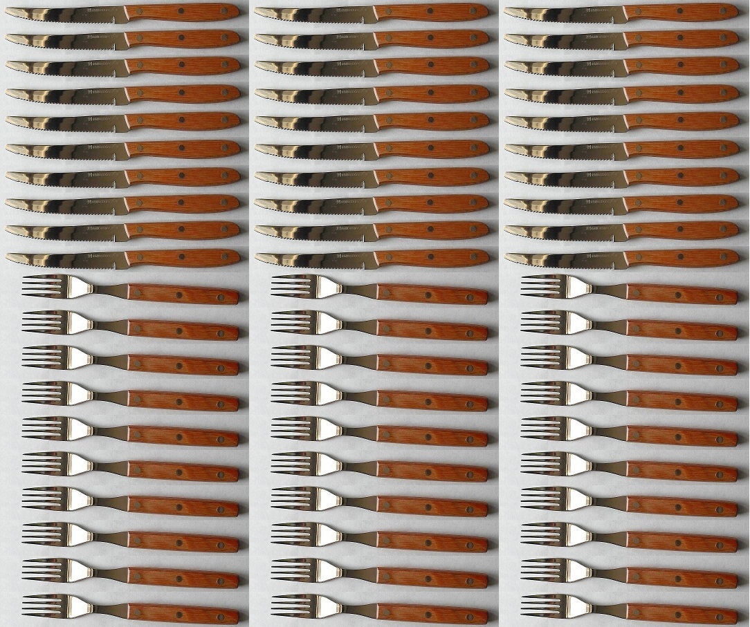 ☆ステーキナイフ&ステーキフォーク各30本ステンレス製・柄茶合板新品新品