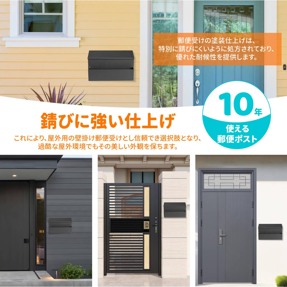 【屋外用壁掛け郵便ポストで、シンプルでスタイリッシュなデザイン】 郵便ポスト 壁掛け メールボックス 屋外 防水 防塵 盗難防止