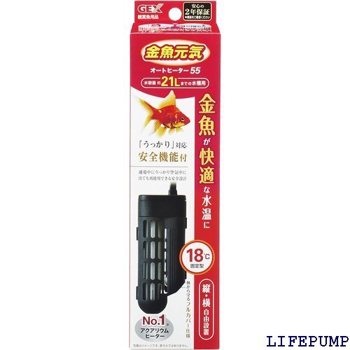 GEX 金魚元気 オートヒーター 55 18℃自動保温 縦横設置 安全機能付 SP規格適合 約21L以下の水槽用 55W 8659
