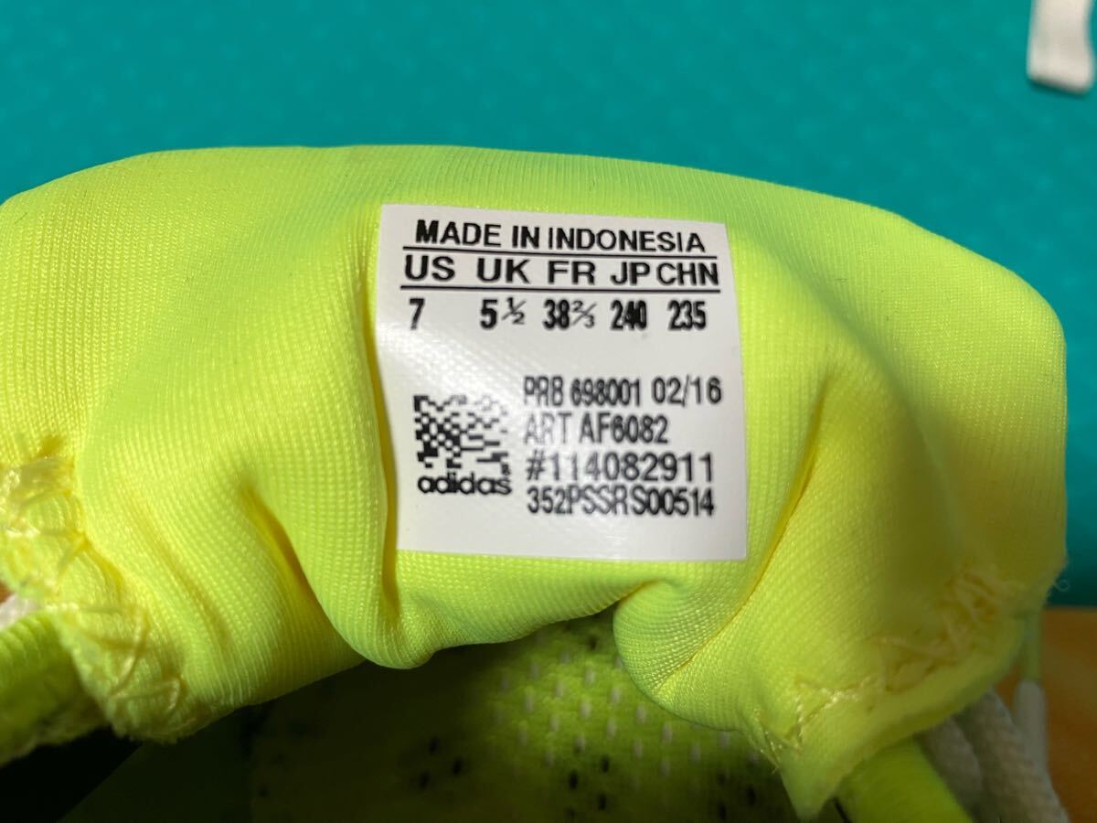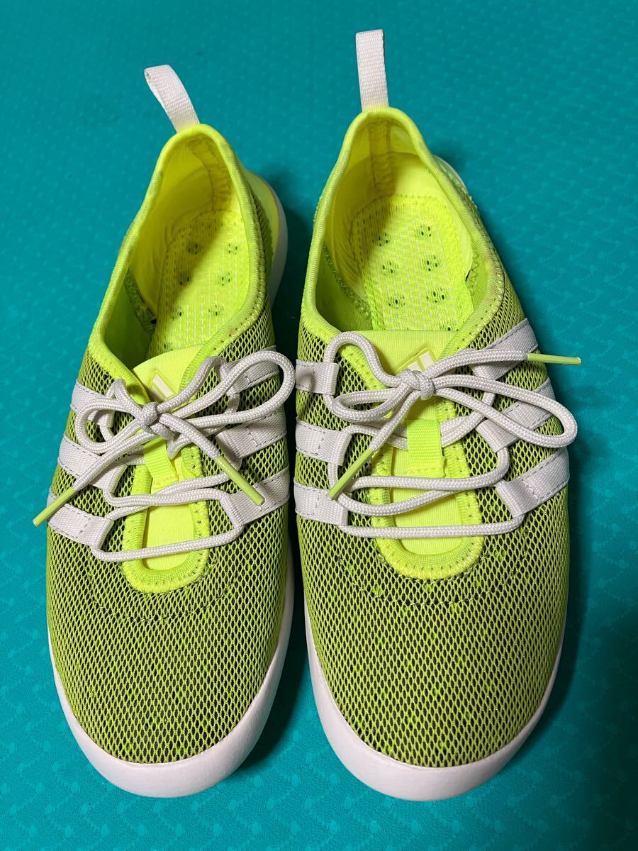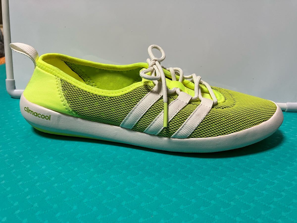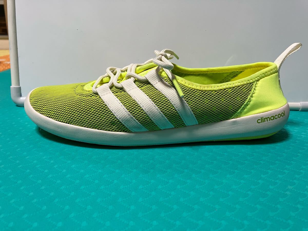 アディダス 軽量メッシュスニーカー 品番AF6082 CC BOAT SLEEK 蛍光黄緑 climacool 24cm。超軽量、通気性抜群で靴底に穴があり、メッシュ加工が施されています。使用頻度の少ない中古品です。いつの間にかサイズアウトしてしまいました。状態は画像にて確認してください。3Nでお願いします。